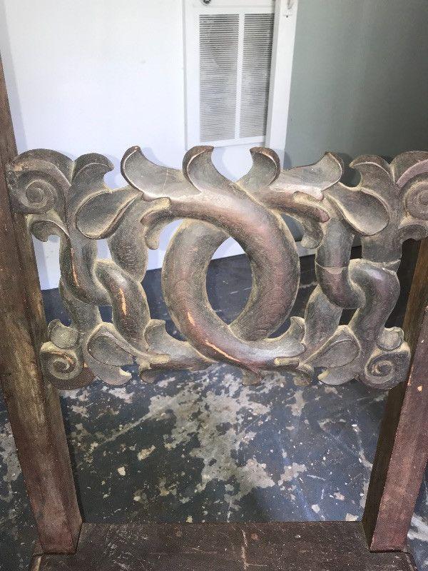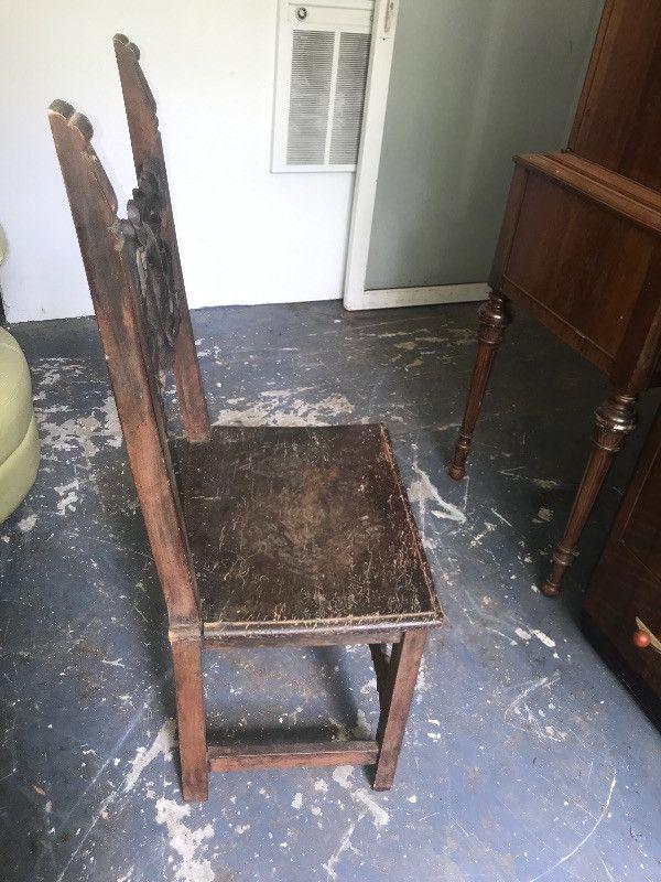 Primitive Antique Side Chair This is a very old antique side chair. There is a deep carving in the center back of the chair. It has the old worm holes in it which shows its age.