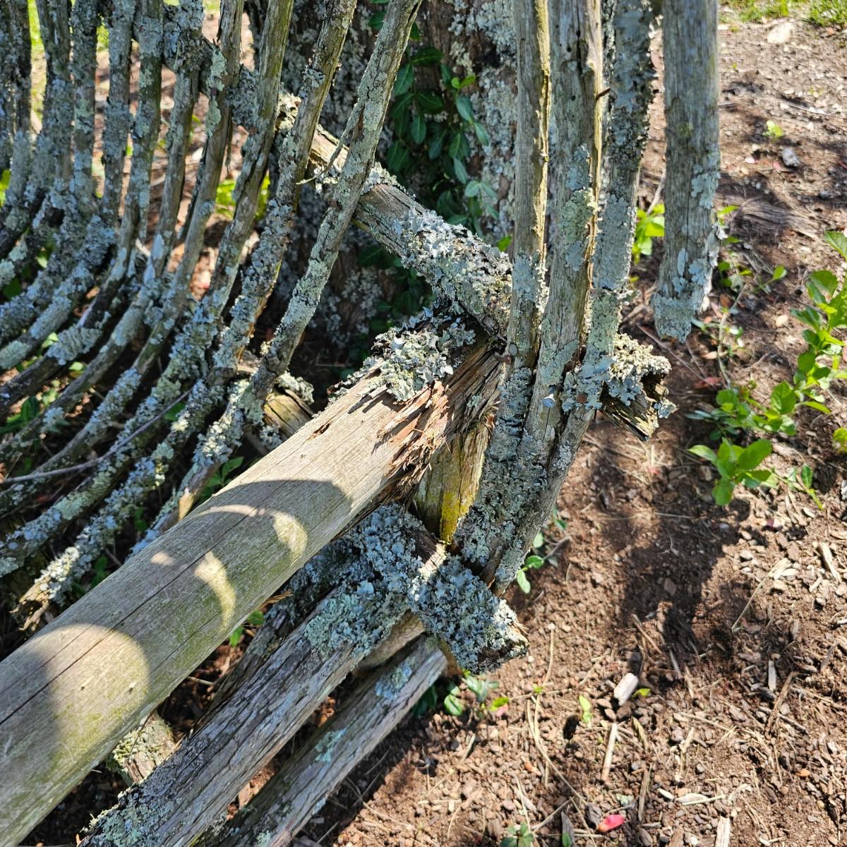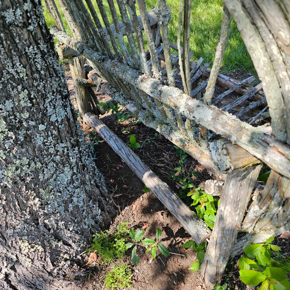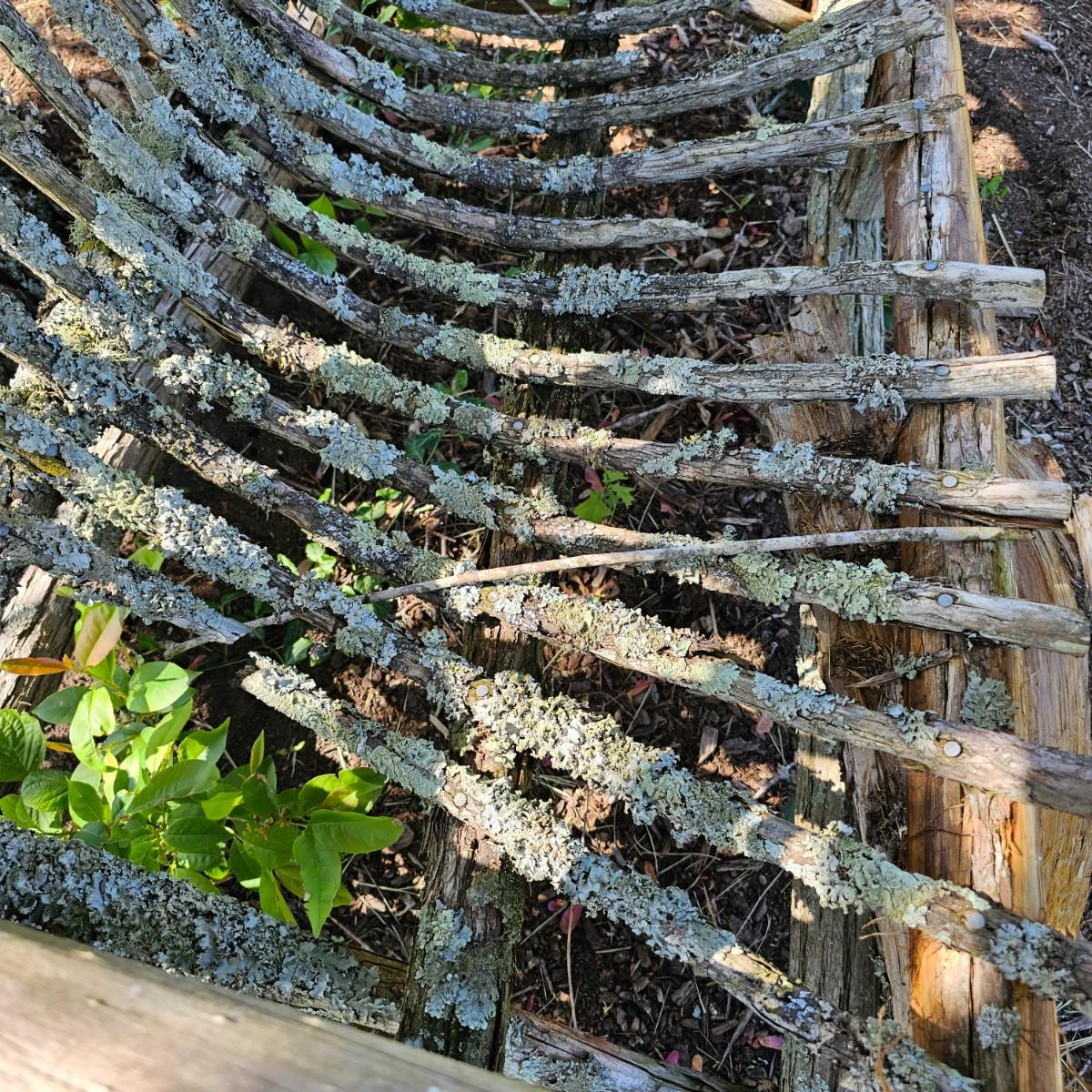A very rustic looking bench made from logs and branches. Chair has curving, arched back, arms and a dipped seat. Measures 27" x 51" x 40"H, seat height 16". Very fragile, may only be suitable for yard decor. See photos for details. Local pickup only.
