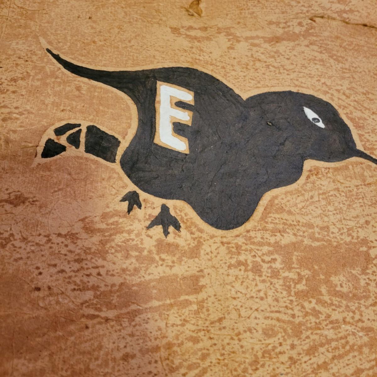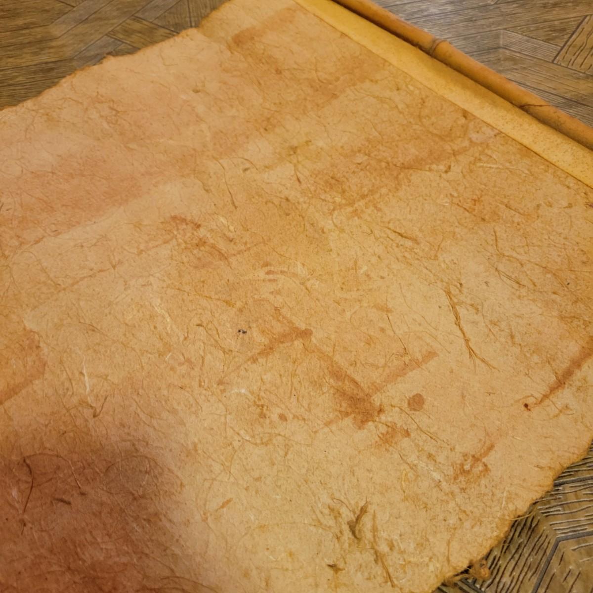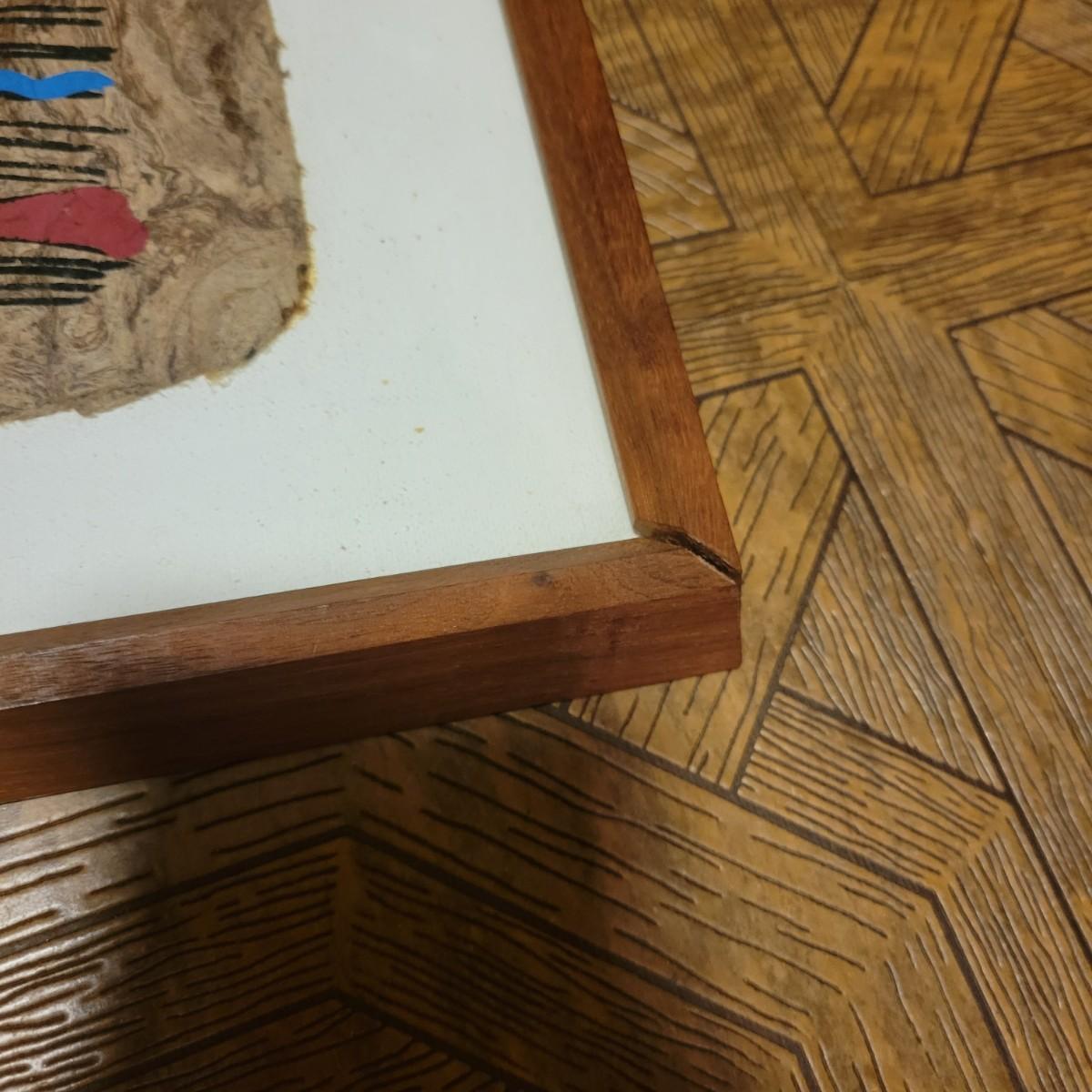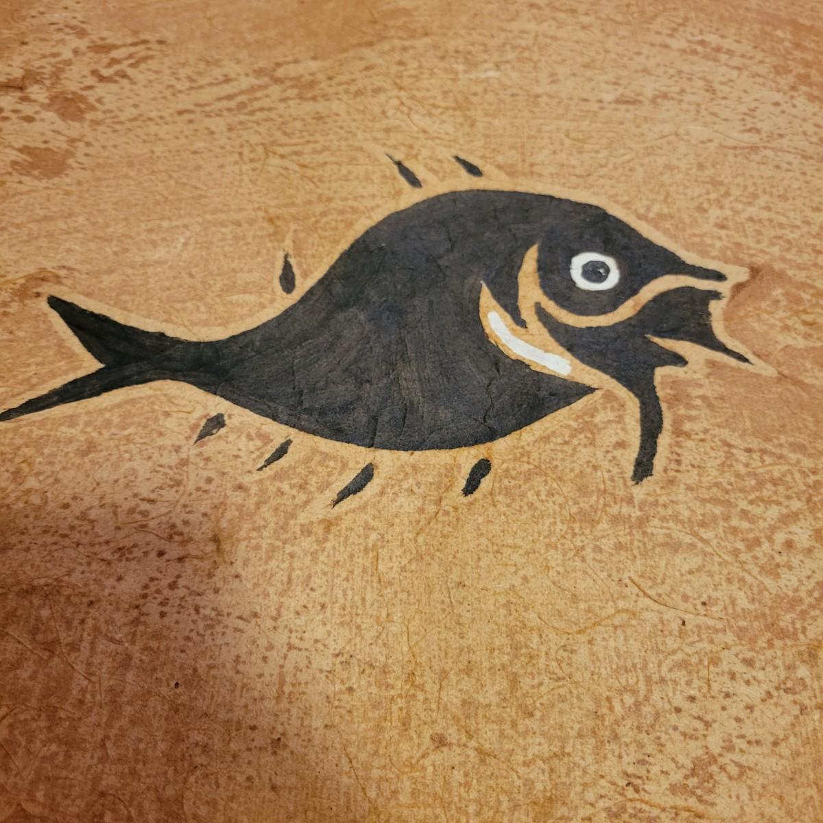 Two pieces of primitive art on bark and a fossil of fish. The smaller, more colorful piece is in a wood frame and top mounted on a mat. The larger piece is unframed, but has bamboo pieces at its top and bottom for hanging. Larger piece measures approximately 17.5" x 40". Shipping art can be costly. We suggest contacting our preferred local shipping provider, Postage Express, with dimensions and getting an estimate before bidding: (828) 670-5501 or postageexpress@yahoo.com.
