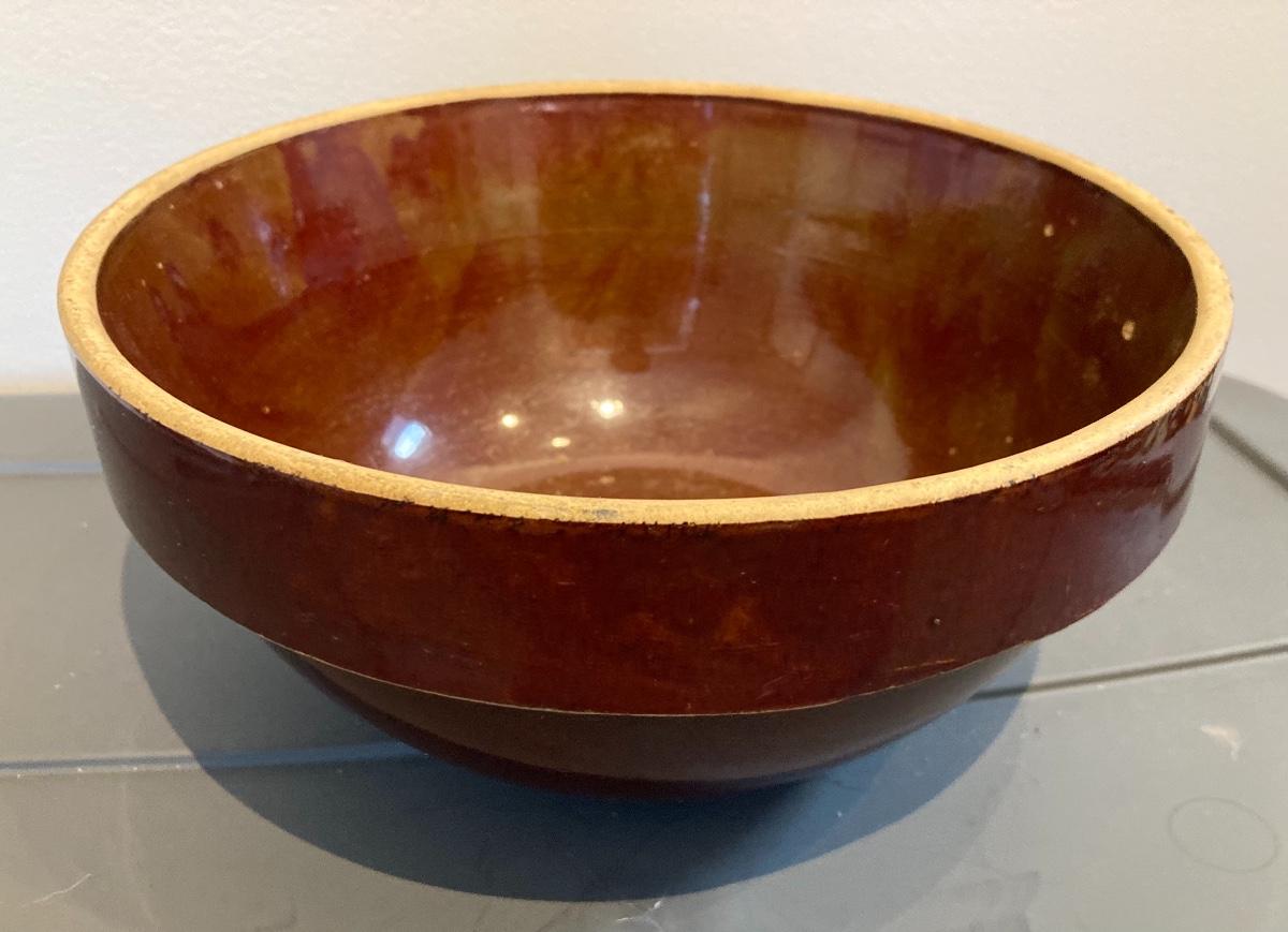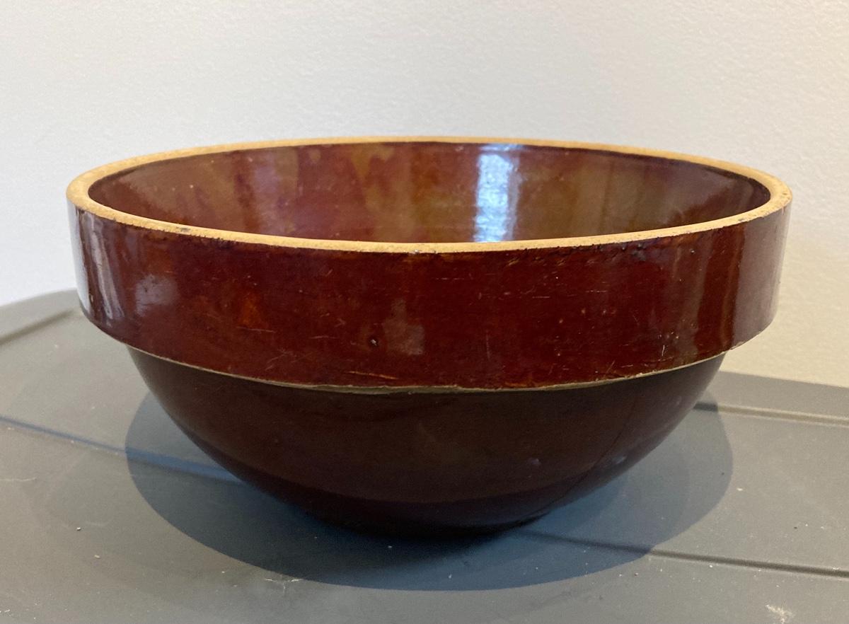 Primitive Brown Antique Mixinv Bowl 9.5” across