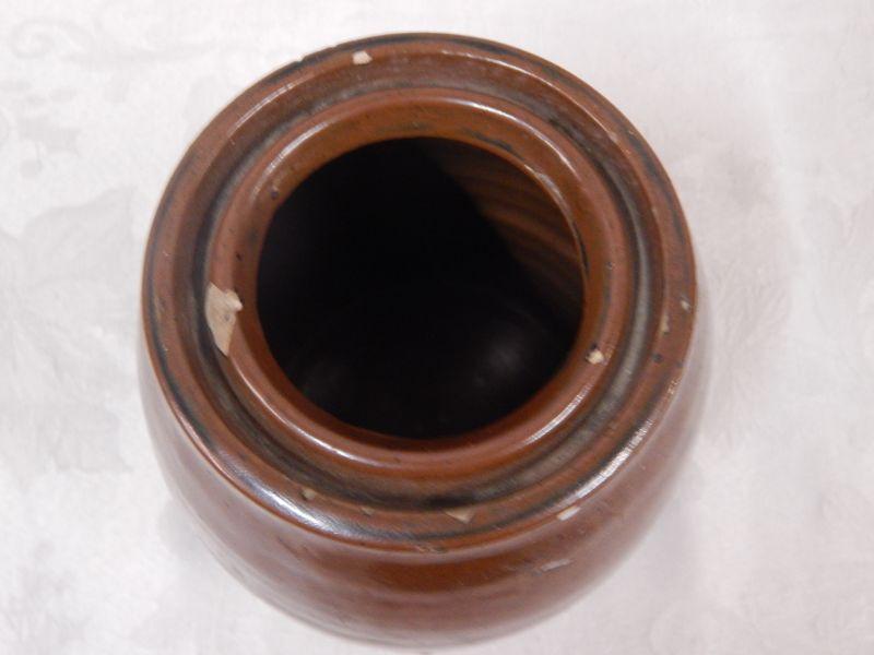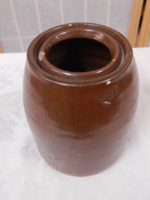 Primitive Brown Stoneware Crock (No Lid) 7" Tall - 5-1/4" Bottom Diameter - 2 Chips on Inside Lip