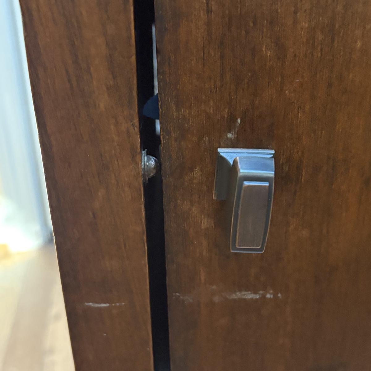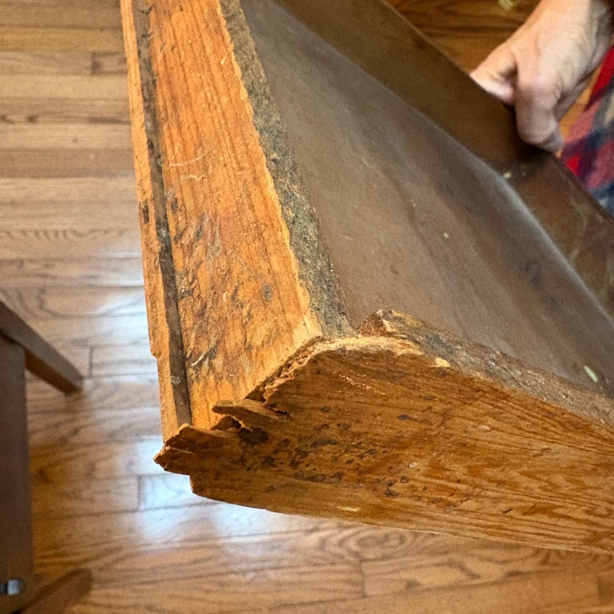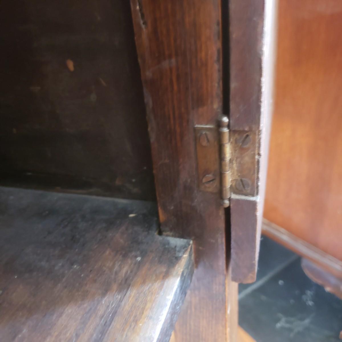 This wooden cabinet end table measures at approximately 15" x 15" x 30"H. It has blemishes, which adds to the rustic charm. Corner of drawer on left side is separating and wood on left side of cabinet is a bit lifted. See in pictures.