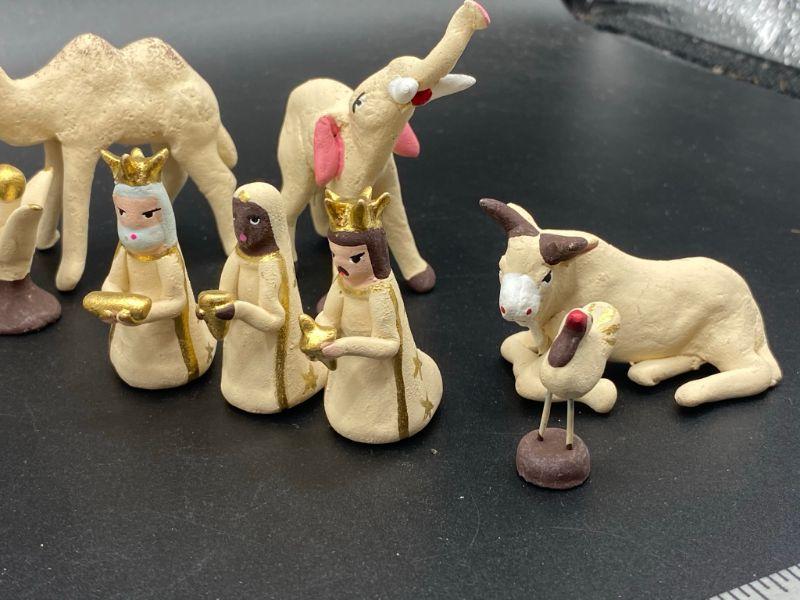 Handmade clay Nativity scene. Good Condition. Unmarked.