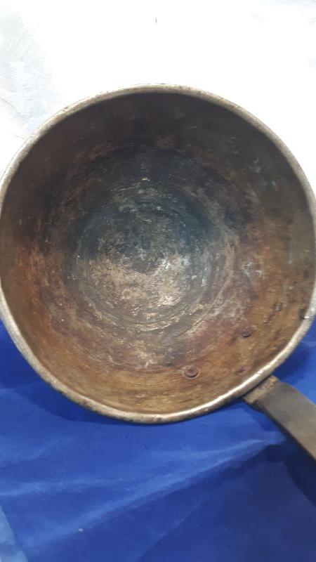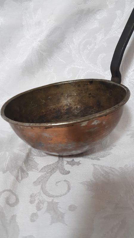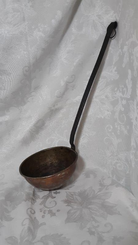 Primitive copper laddle XXL! Iron handle 14.5" long, scoop 6" diameter