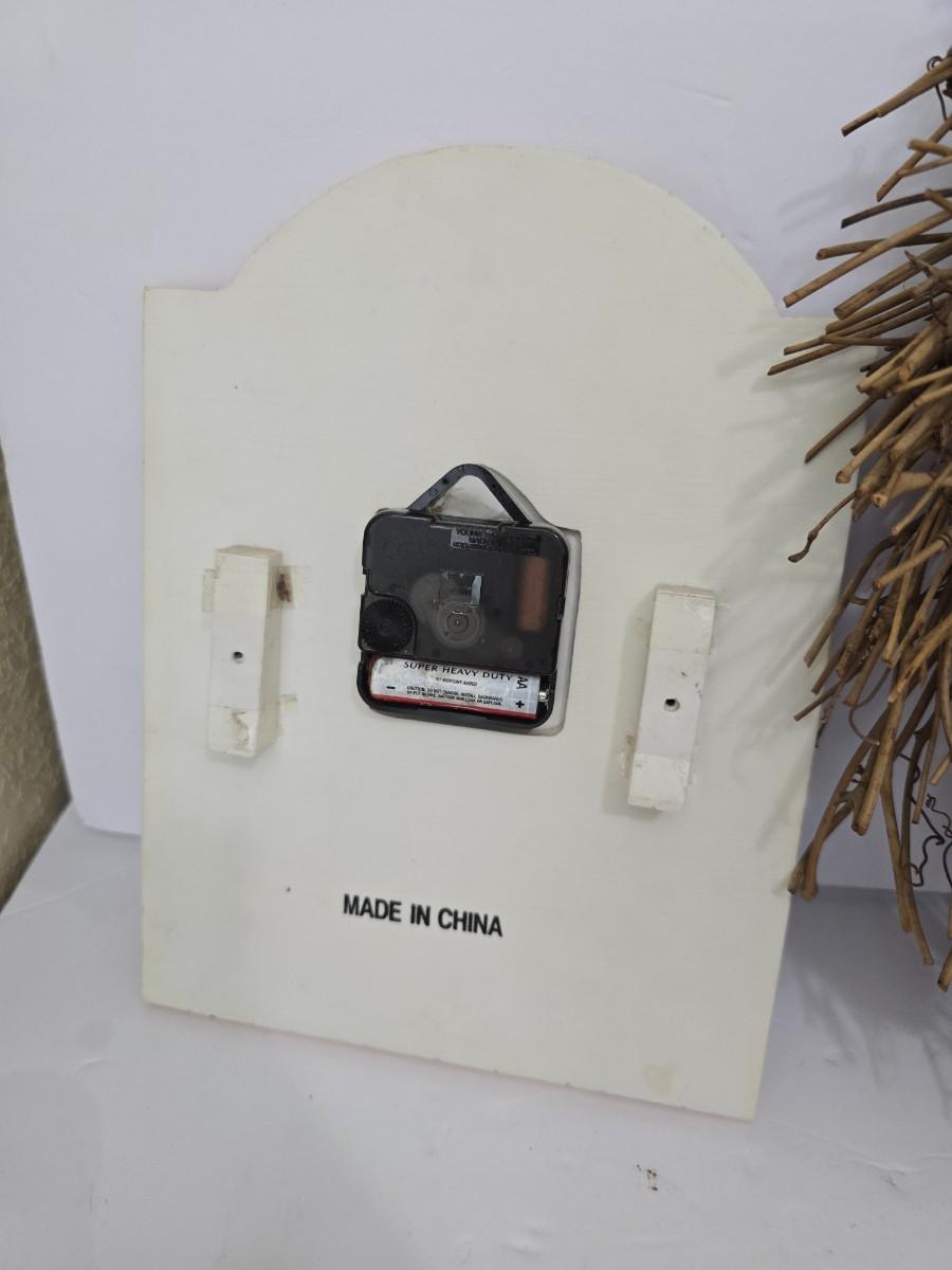 Add a cozy touch to your space with this bundle of primitive country-style decor. Includes a decorative wall clock with “Home Sweet Home” motif (battery-powered, untested), a twig wreath embellished with tiny birdhouses and apples, a wooden wall plaque with hearts and homespun ribbon detail, and a split coconut shell carved bird decor piece. Ideal for cabin, cottage, or farmhouse decor.