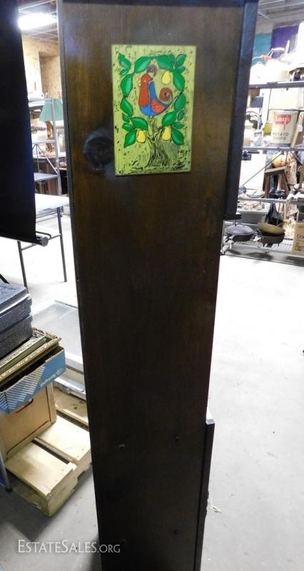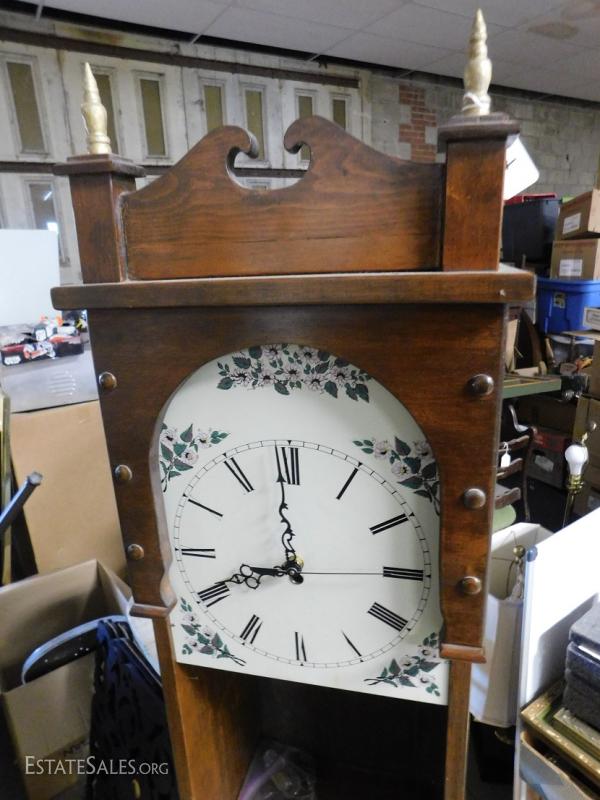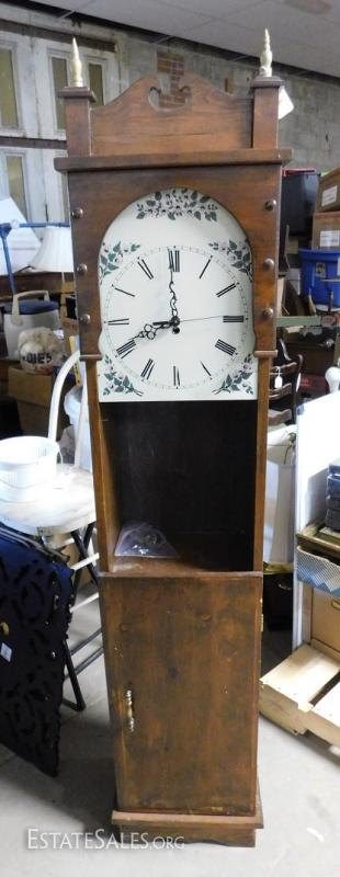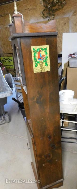 Primitive Dutch Cabinet Clock battery operated. No name visible. Possible folk art piece. Has all pieces.