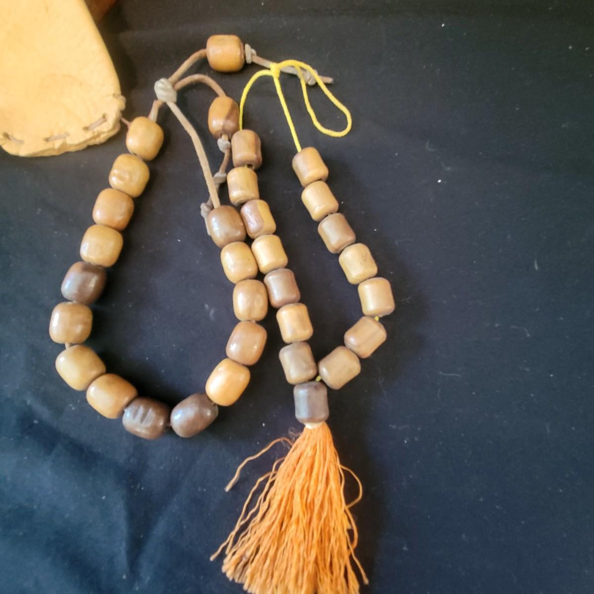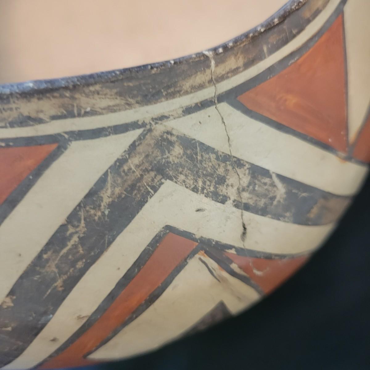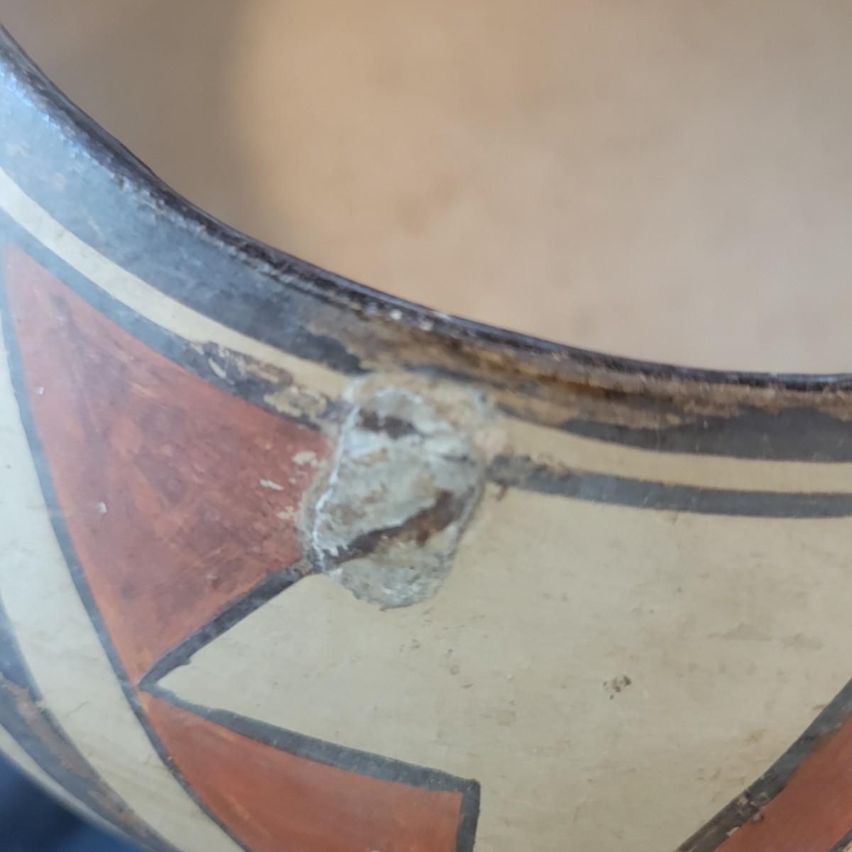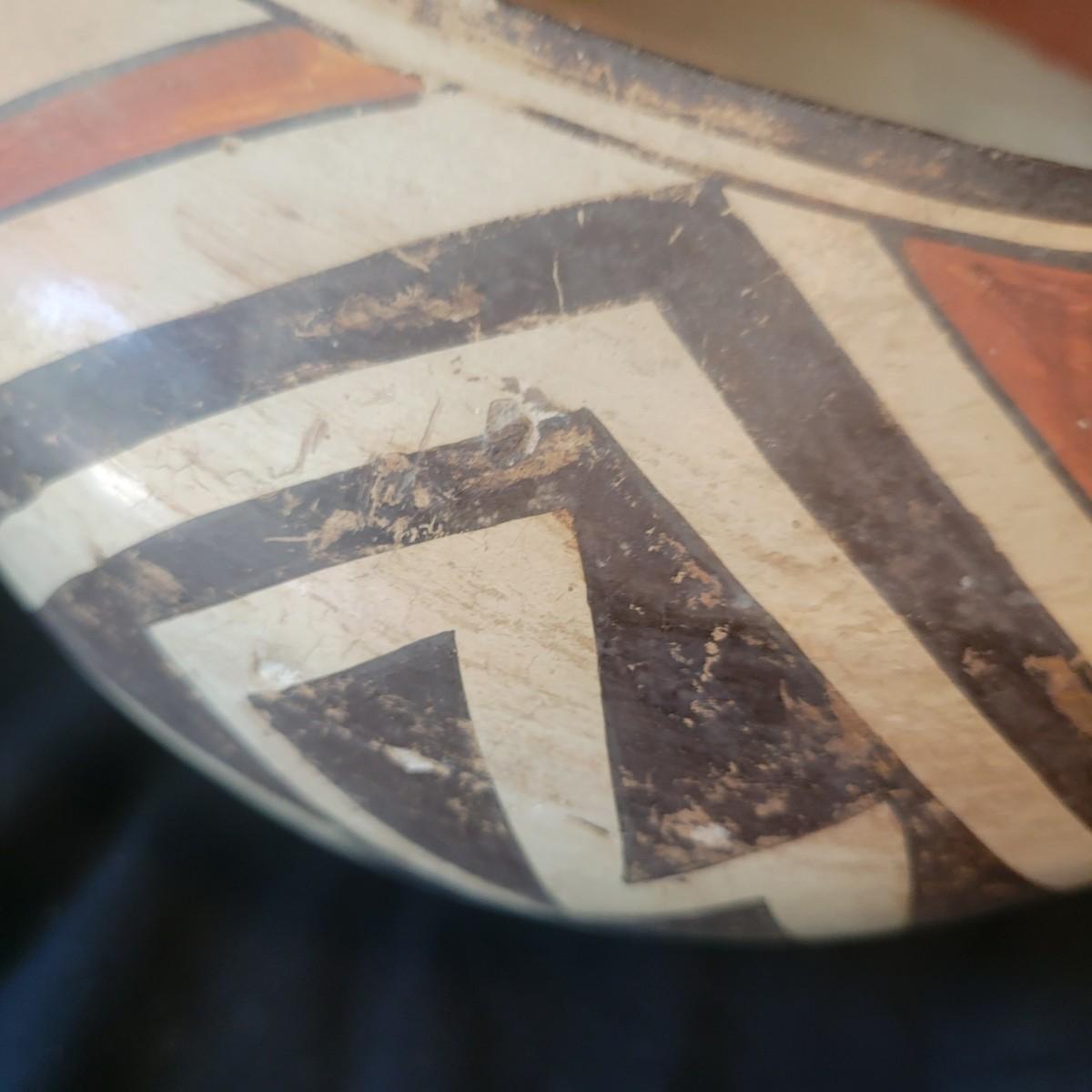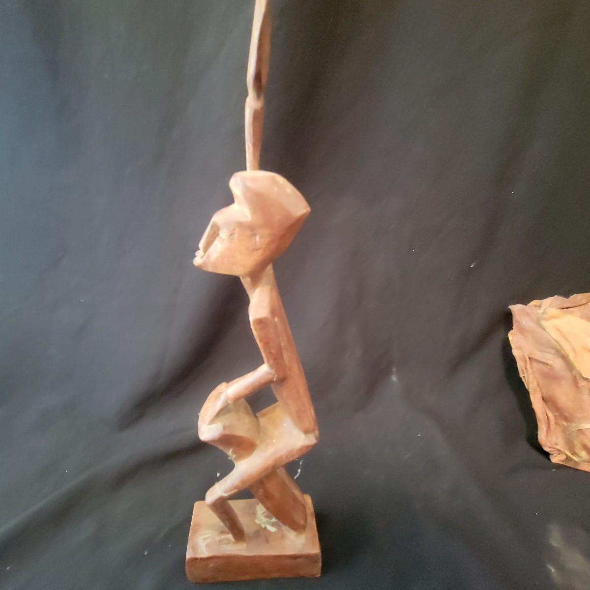A mix of primitive folk art from different cultures. A hand painted boomerang, strands of beads of unknown origin. A bowl of mixed terracotta and pottery, appears to be hand painted, but does have damage, see attached pictures. A hand carved and painted mask with no identifying markings, a carved figurine beating a drum with no identifying markings and a horse head made from leather crafted by the estate owner. Also included is a book on the Living Tradition of Yup'Ik Masks. Hand painted bowl measures approximately 9" x 6" Shipping available