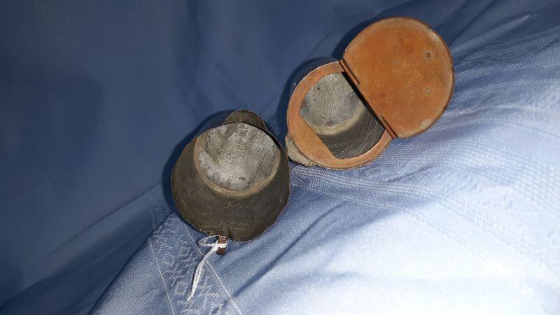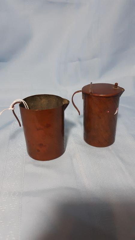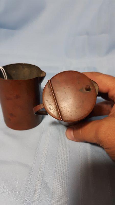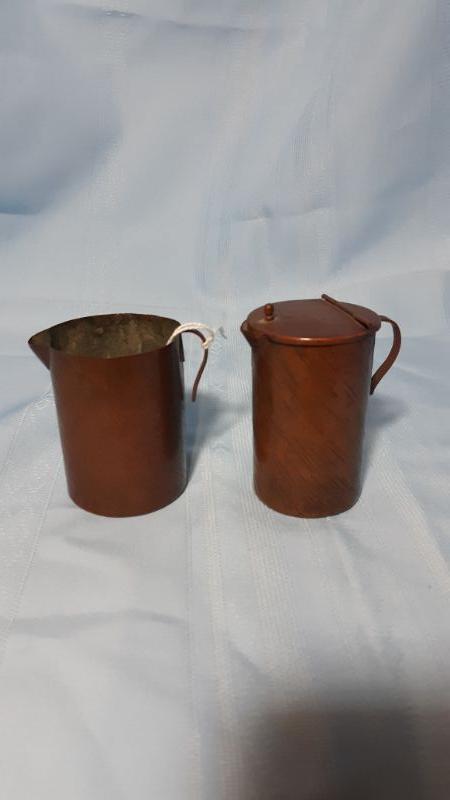 Primitive handmade copper cream and sugar pots