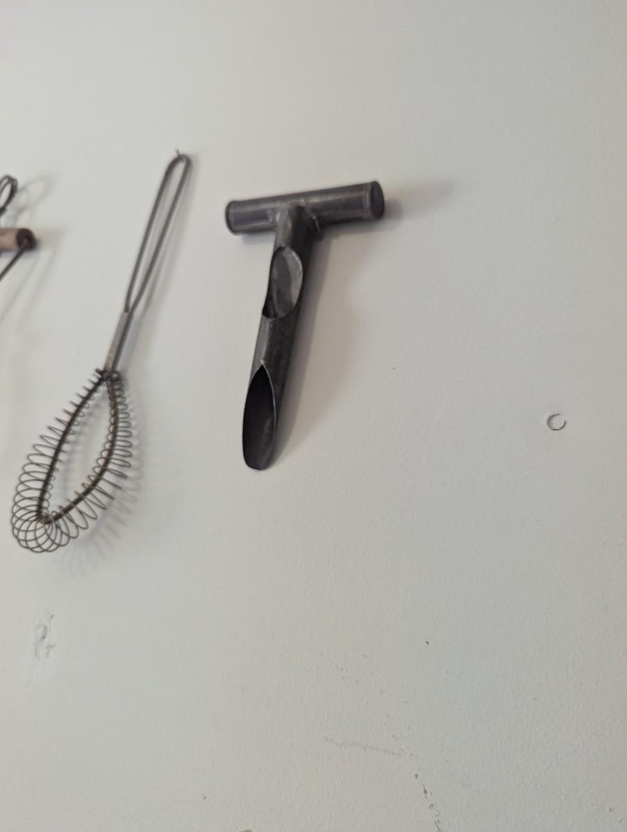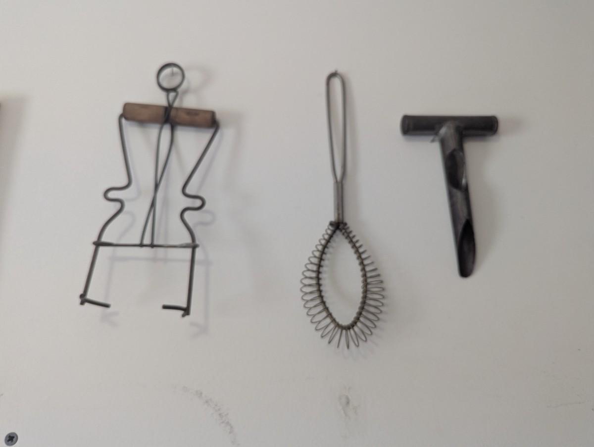 Primitive Kitchen Utensils 1930's Canning Jar Lifter Wood & Metal Potato Masher Fruit Corer (L)