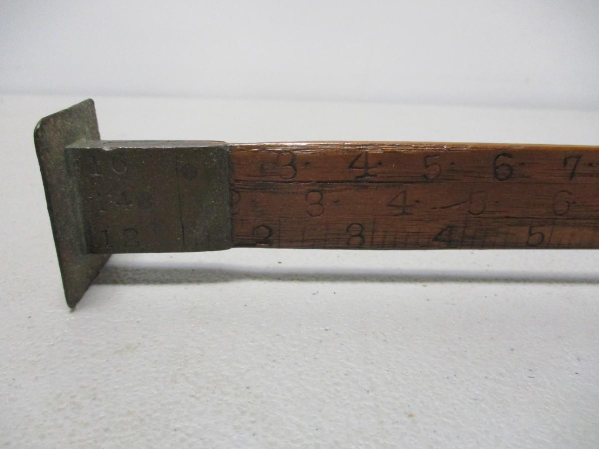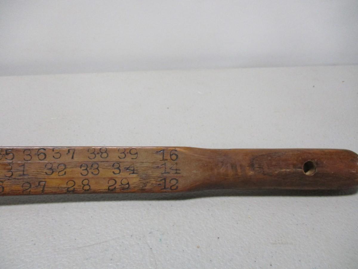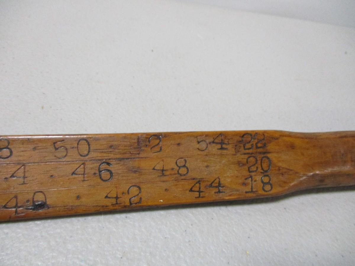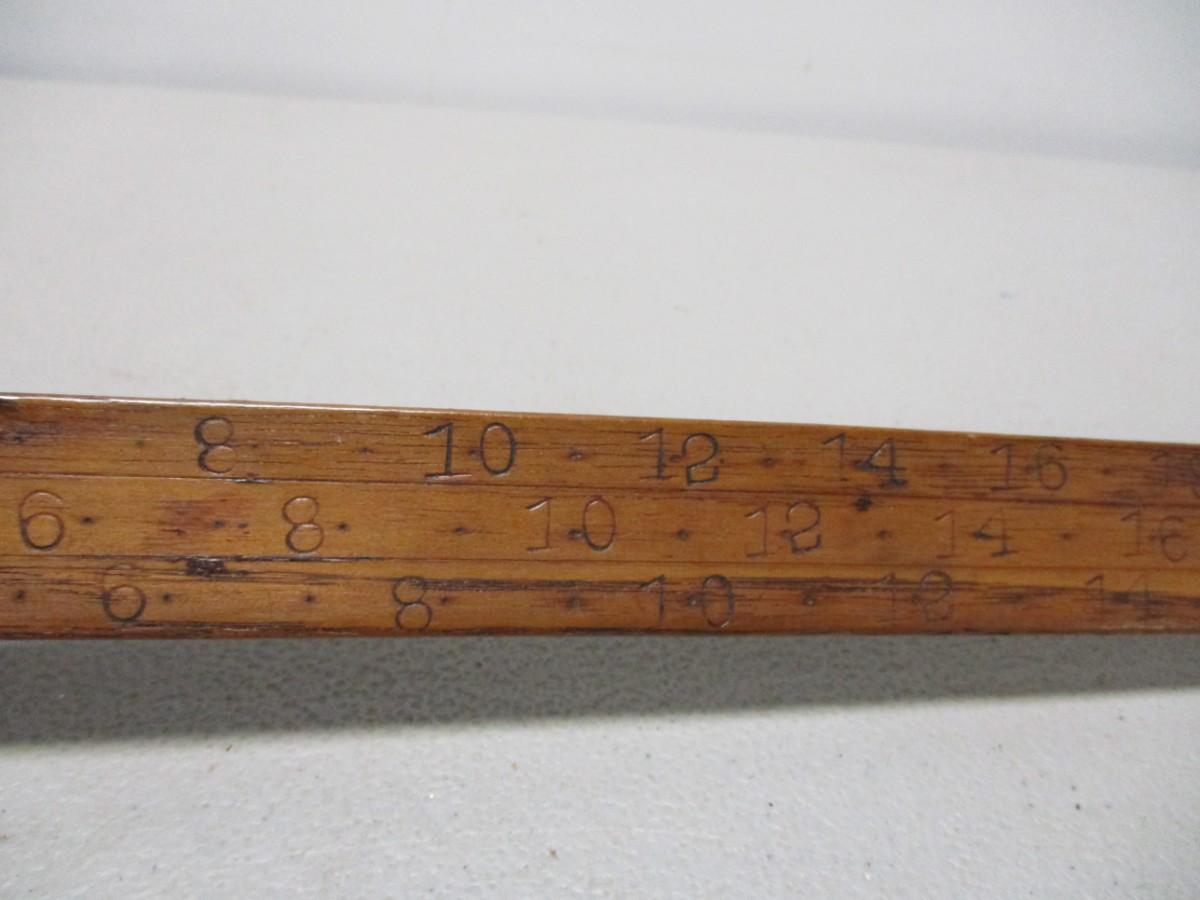 Rare Primitive Bendable Hickory Wood Measuring Stick with Brass Foot for Measuring Felled Trees Michigan Origin