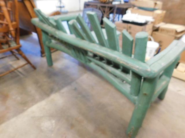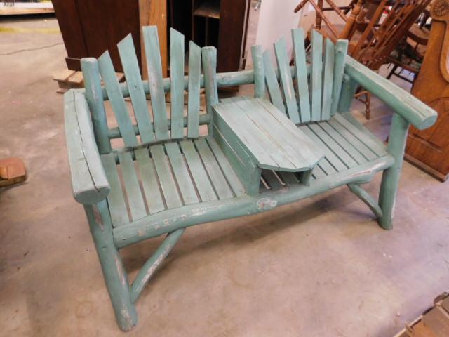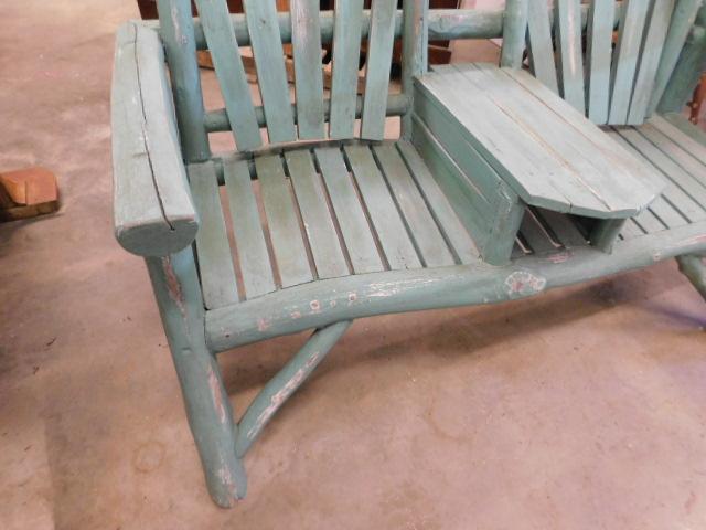 Primitive Natural Log and Wood Slat Double Seated Outdoor Bench 56" has some dry cracking