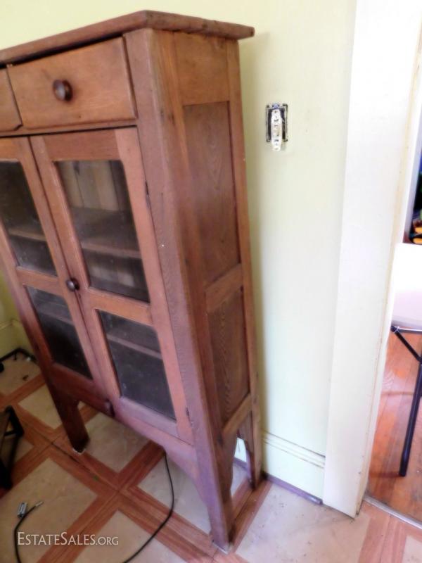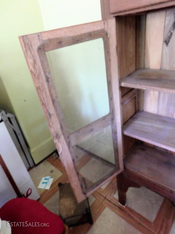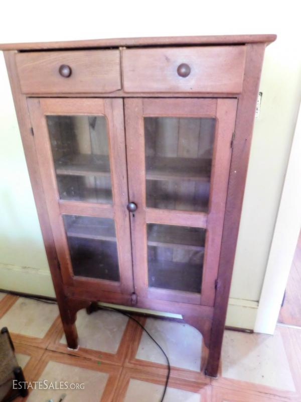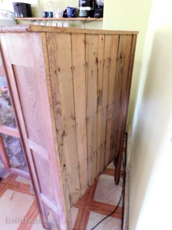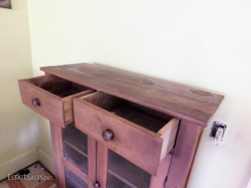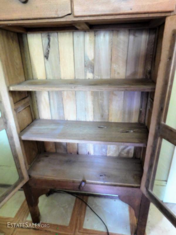 Primitive pie safe with screened front doors. Some of the wood was rough cut. Is in good condition for its age but shows wear. Top shelf is split. Has some knot holes that are weak on backside slats. Top has some splintering but solid. Stands on its own but moves slightly. Really nice primitive piece!