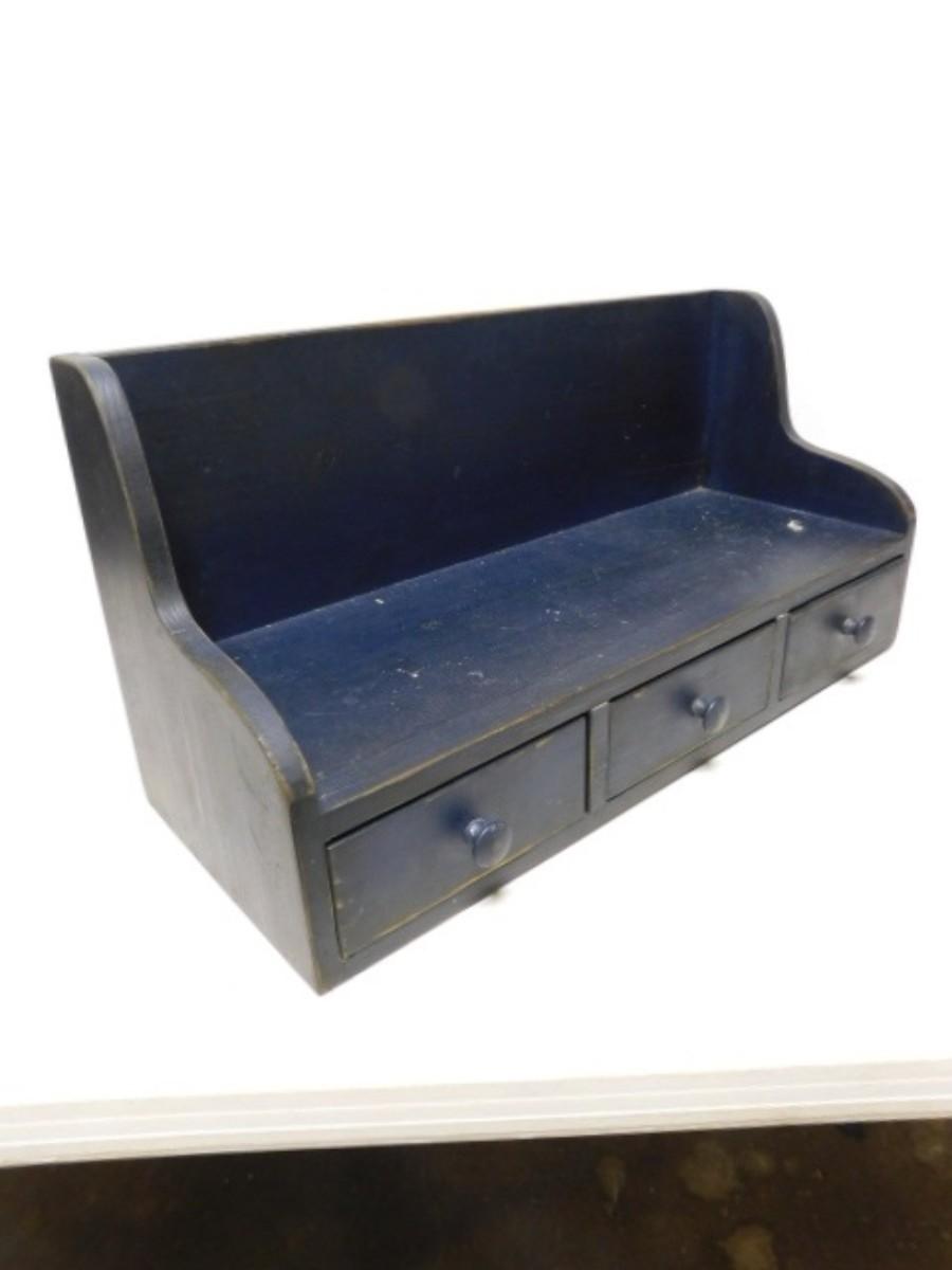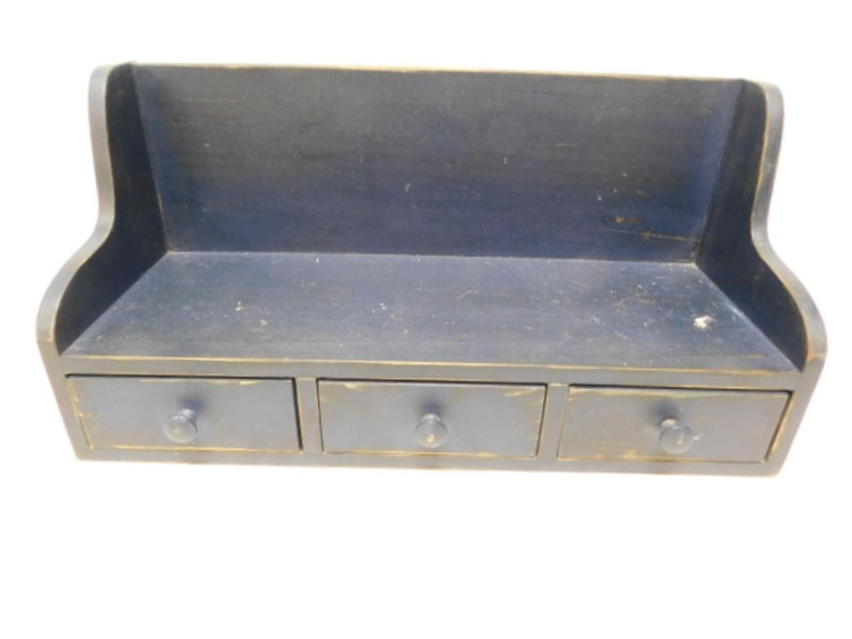 Primitive Solid Wood Wall Shelf with Cubby Drawers