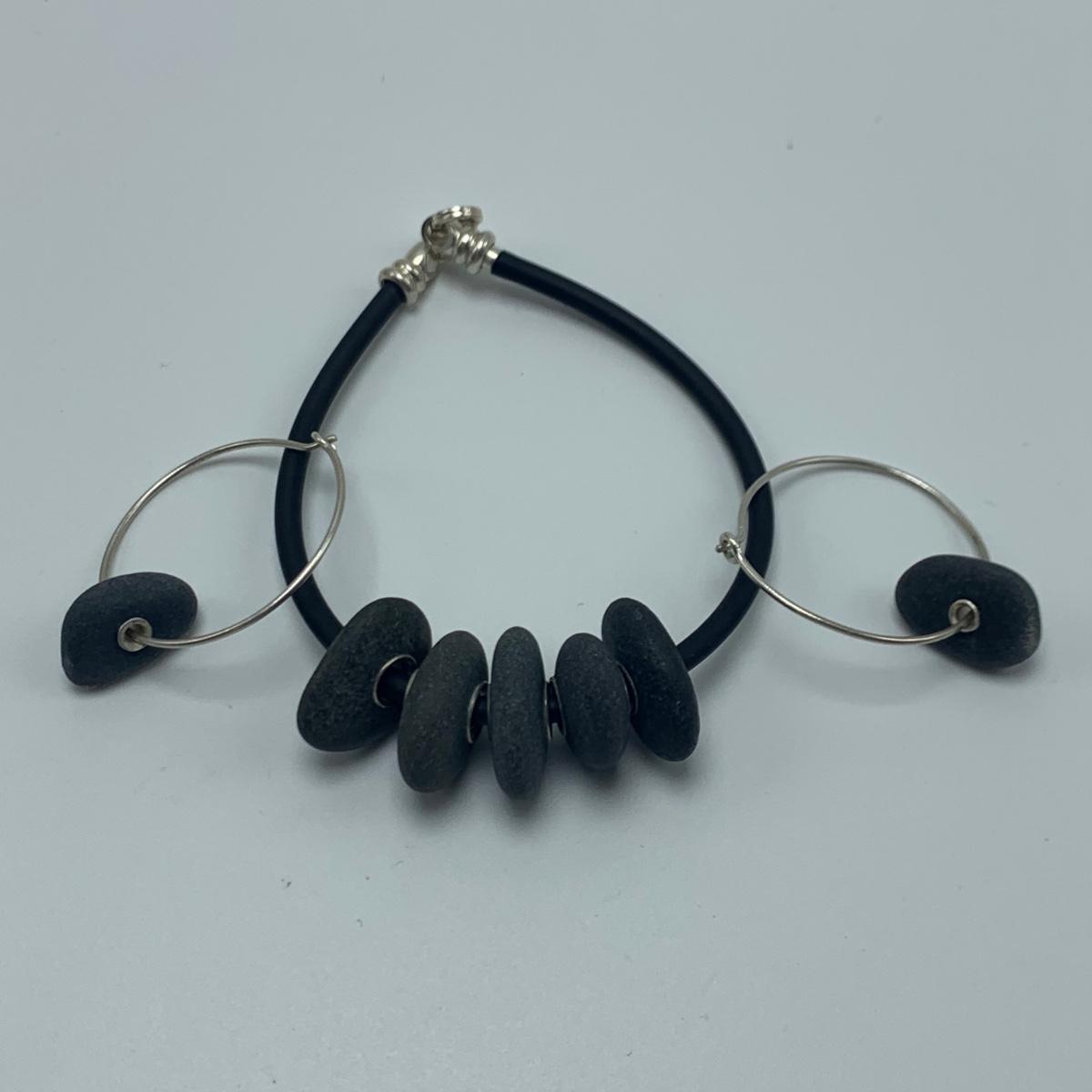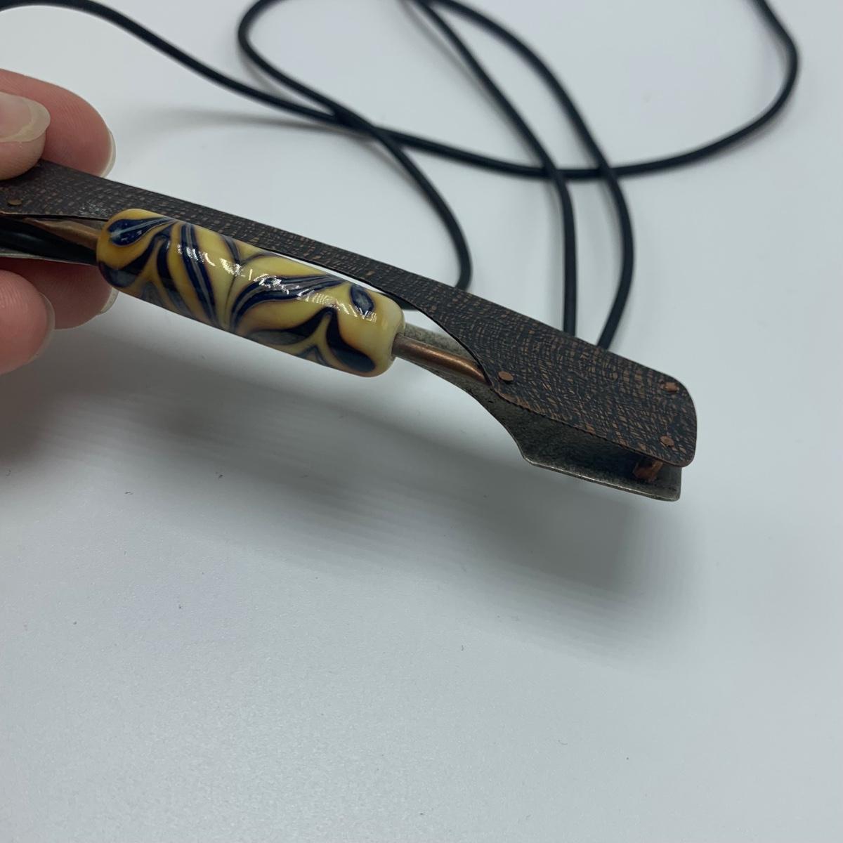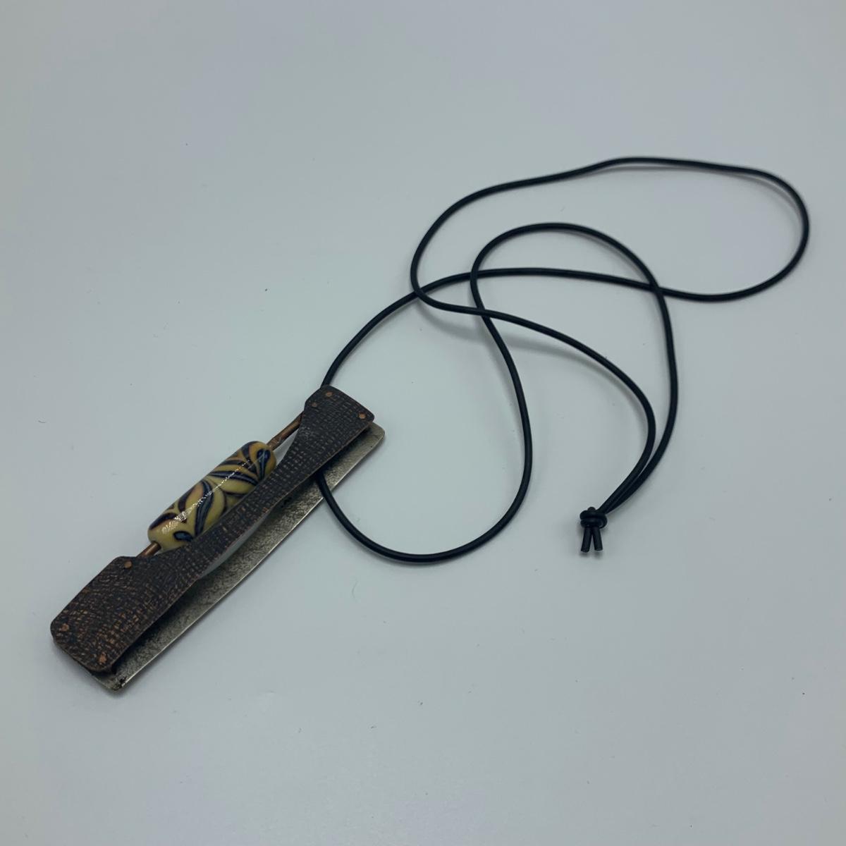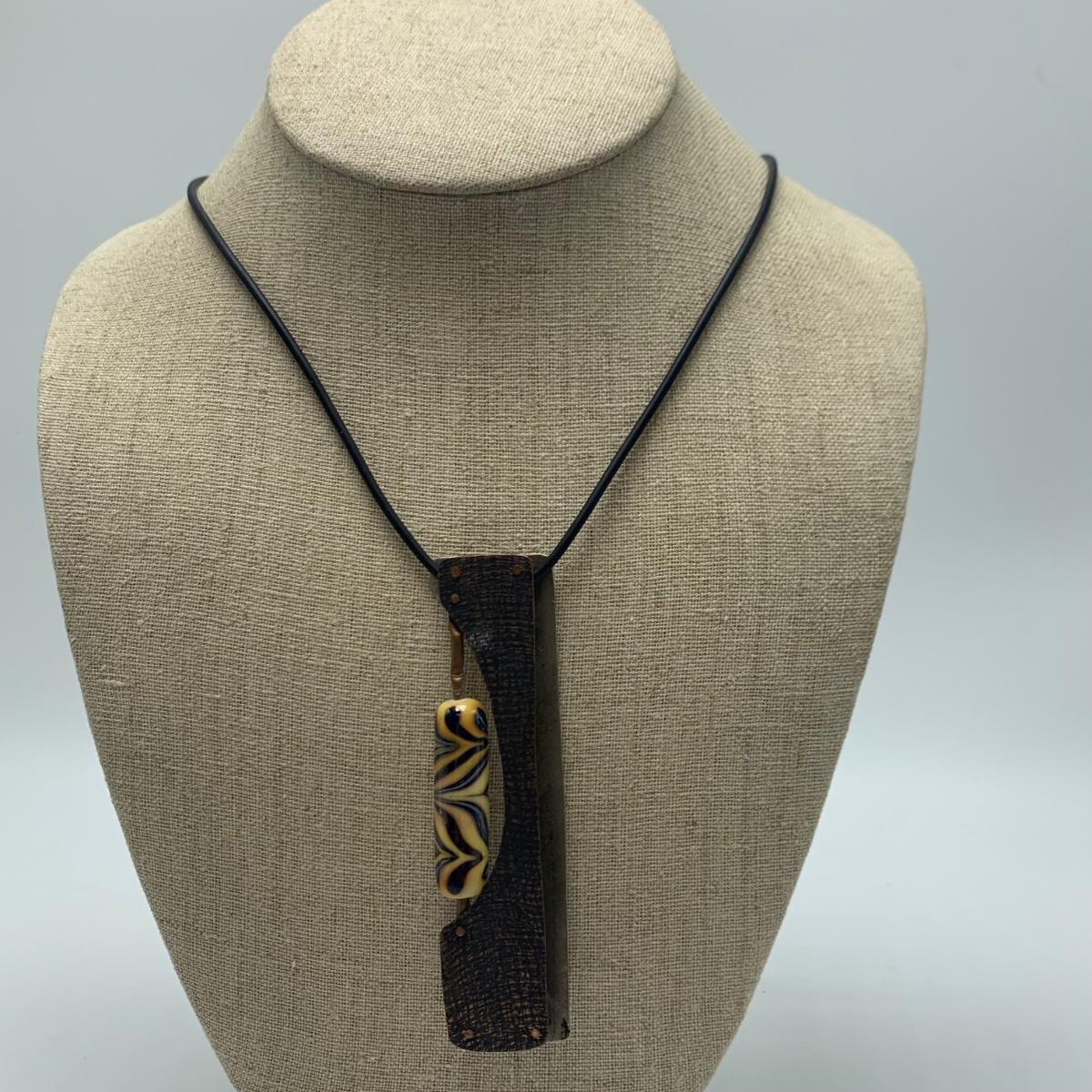 The style of art seen in this jewelry is reminiscent of earth’s elements. There are four necklaces, two of which have matching earrings, as well as a bracelet and earrings set, two pins, and one earring that is missing its mate, but could be transformed into a pin or used otherwise. The earrings with the gold accents are clip-on, and the other two pairs are for pierced ears. The set with gold accents is ceramic and the pendant is on a fabric cord, as is the large navy, rust, & ivory colored pendant. The two longest necklaces (with fabric pendant and metal pendant) are about 31”. The metal pendant with a bead is on a rubbery cord. The bracelet and earrings set have gray stones. All sales are final. No returns or refunds. Please bid accordingly.