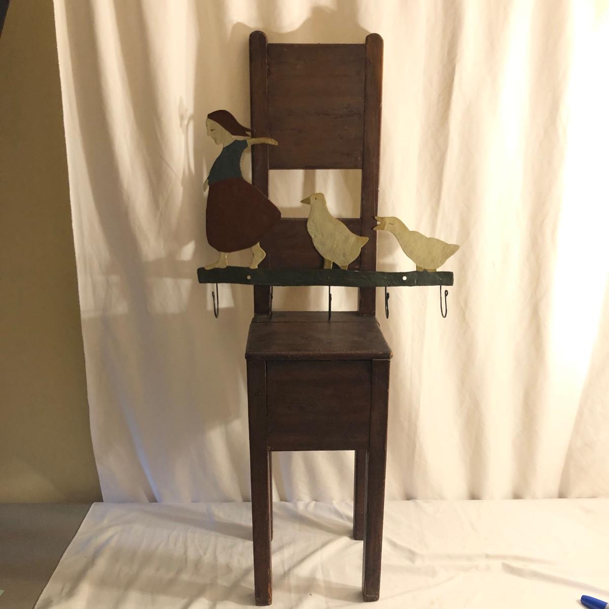 Primitive Style Chair & Folk Art Hat Rack (LR-MG)