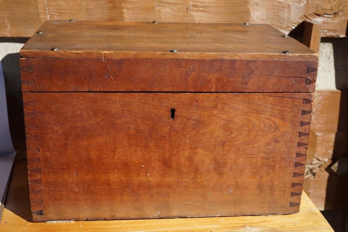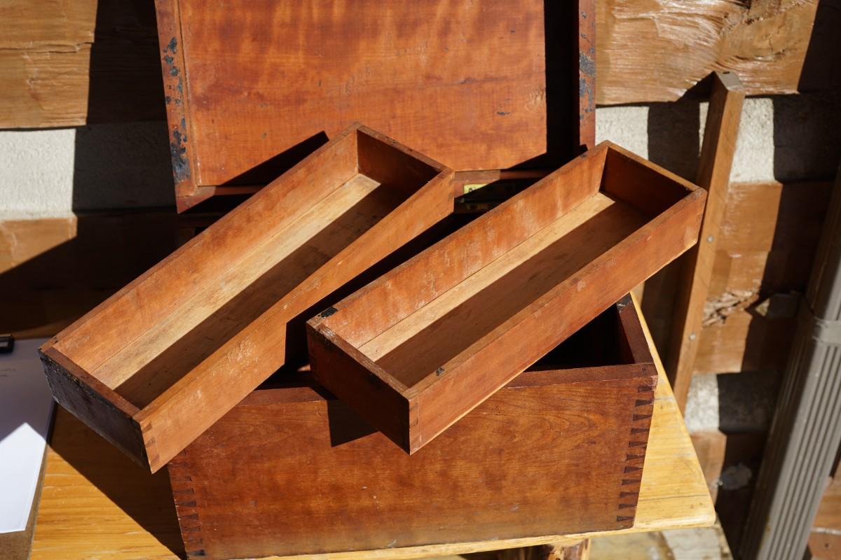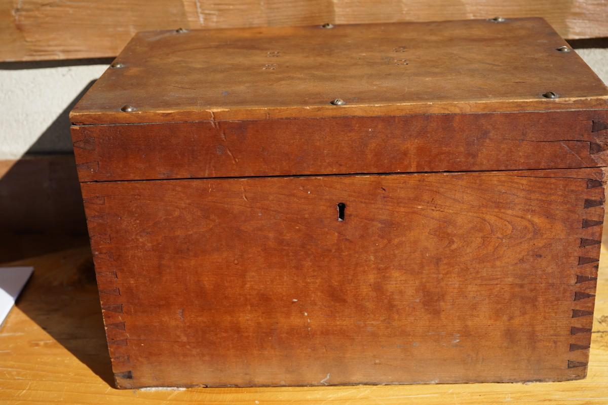 PRIMITIVE STYLE CHERRY STORAGE BOX W/TRAYS