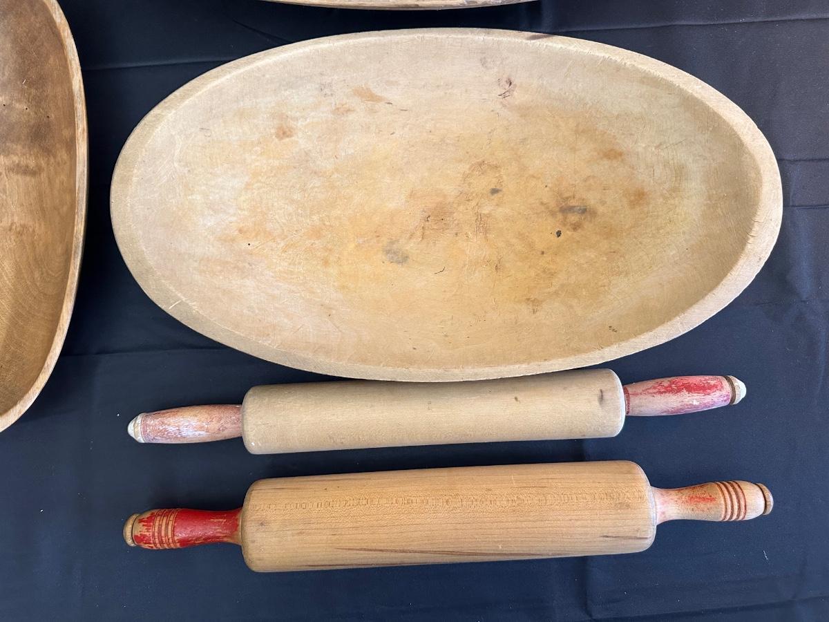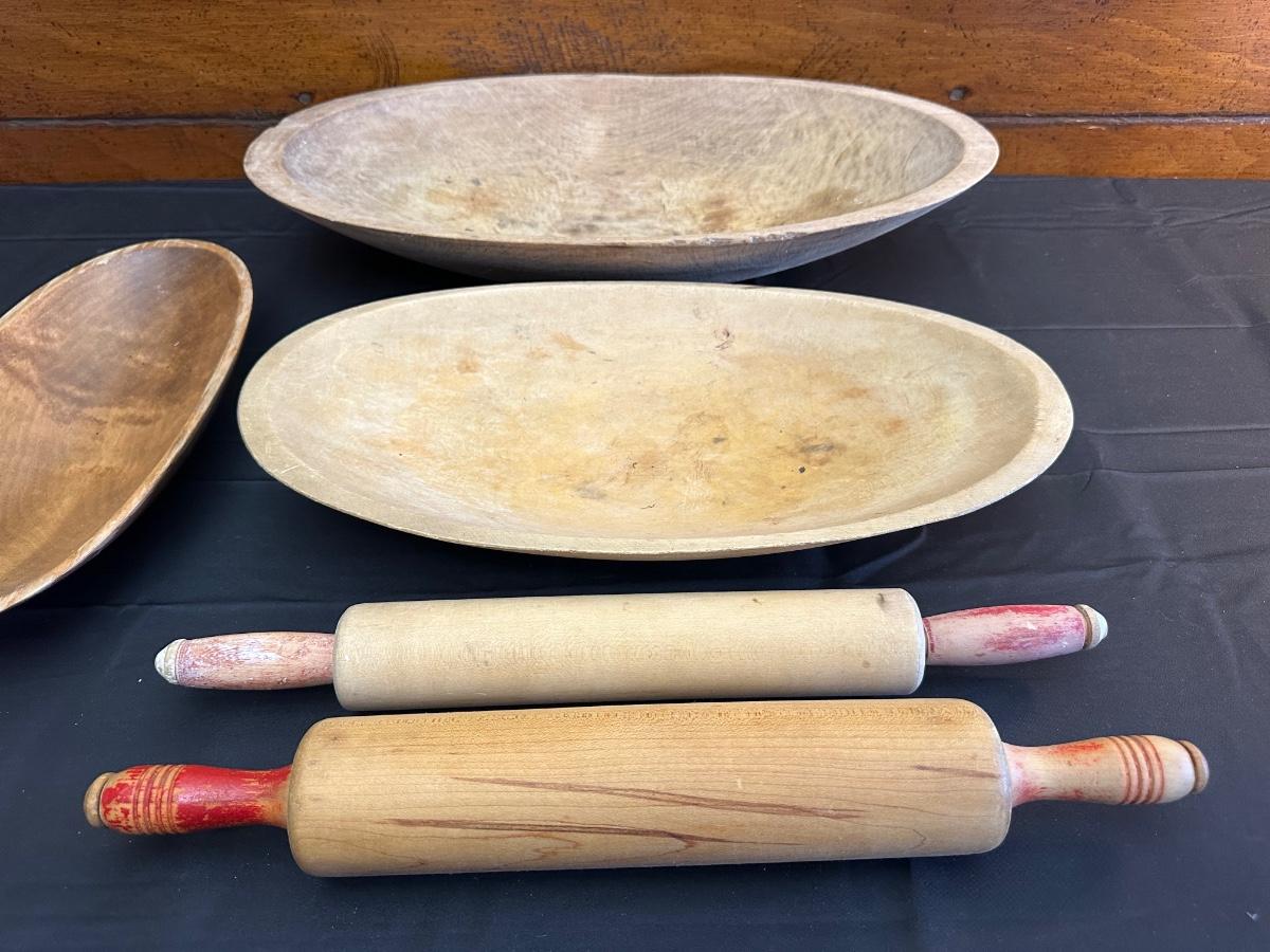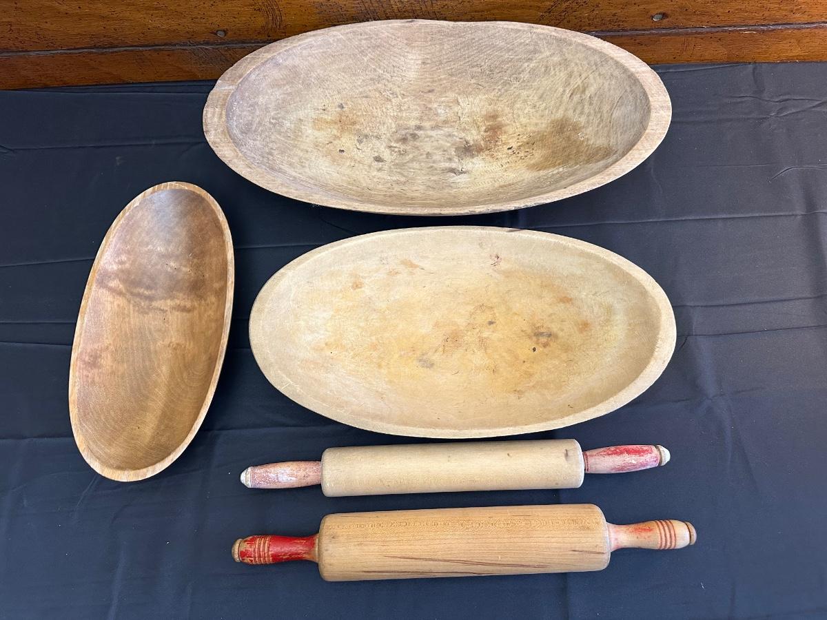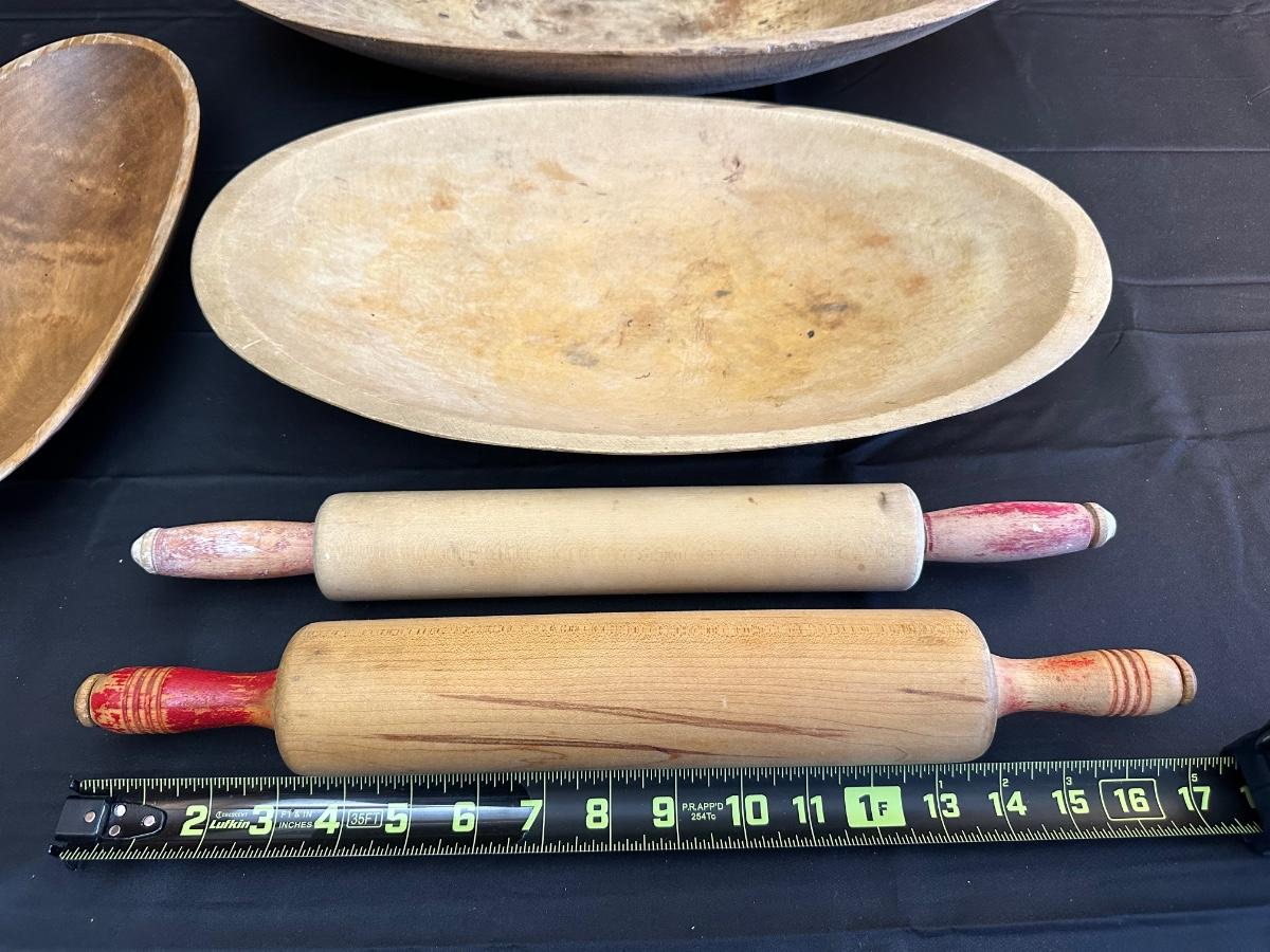 Primitive Wood Bowls, Rolling Pins, Cutting Board and China Plate