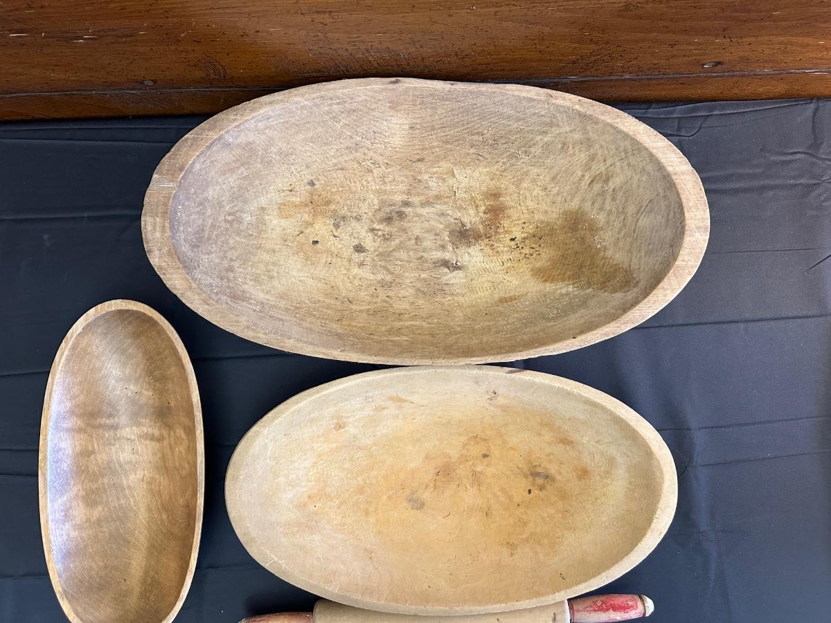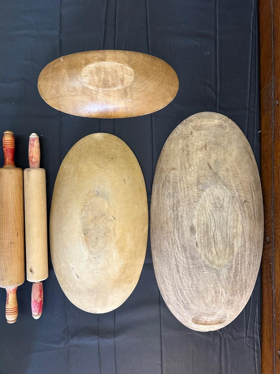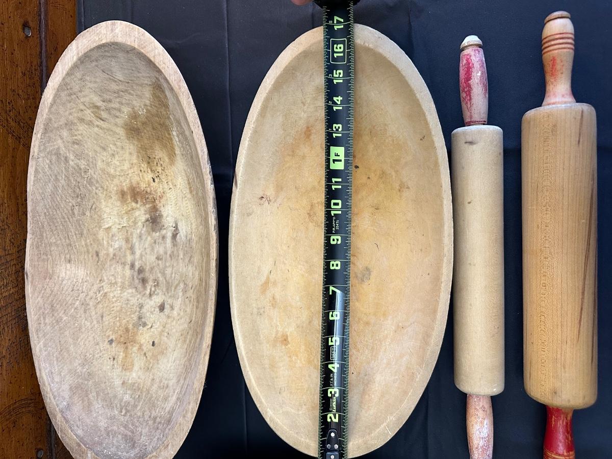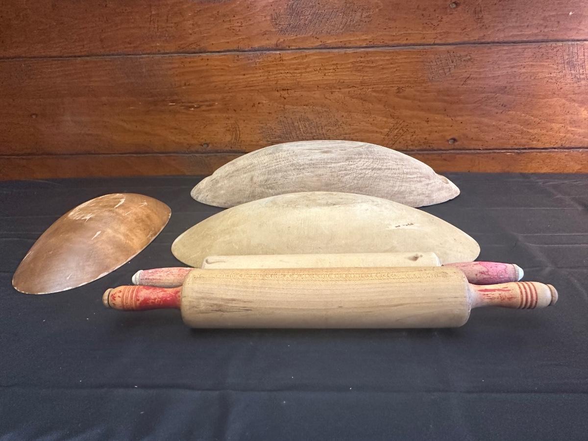 Primitive Wood Bowls, Rolling Pins, Cutting Board and China Plate