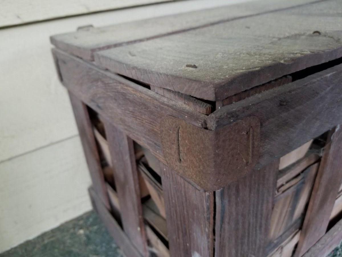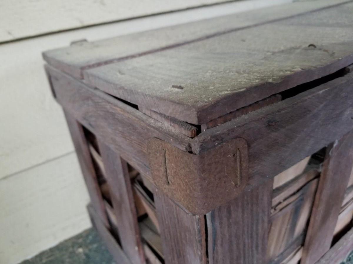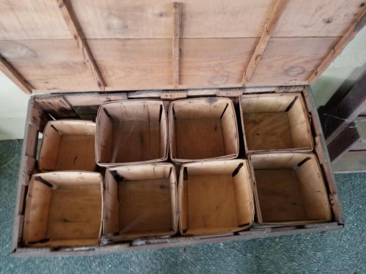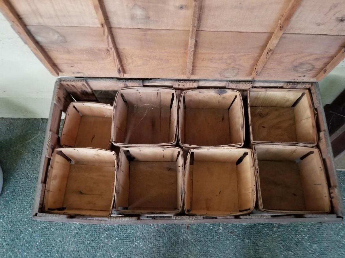 Primitive wood berry box crate with all wood baskets included