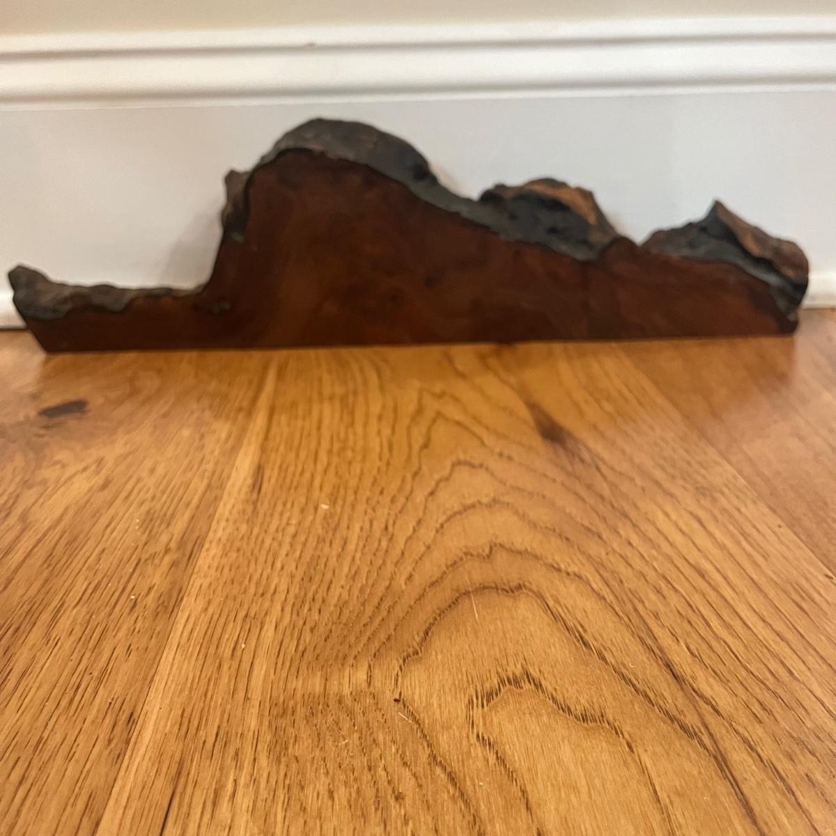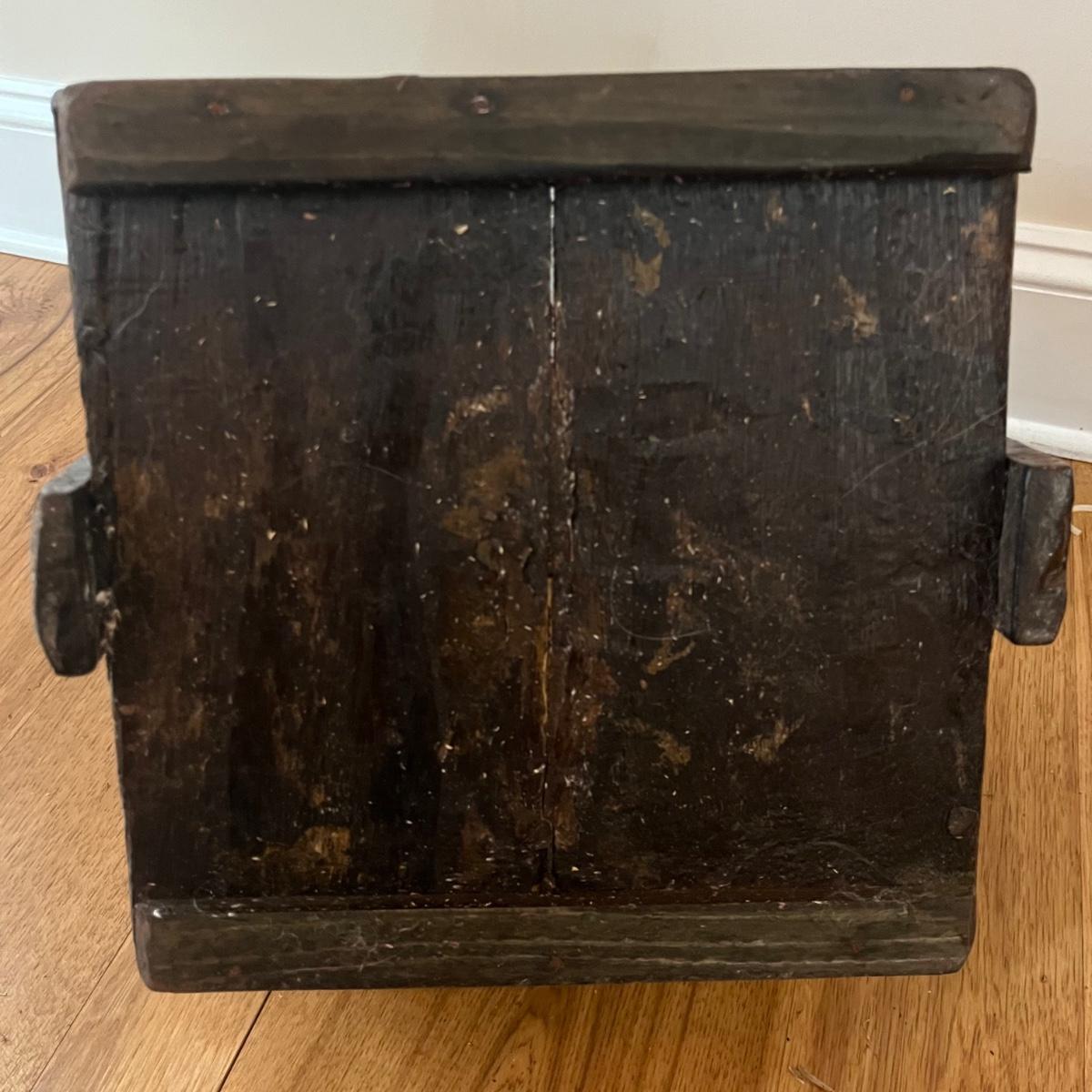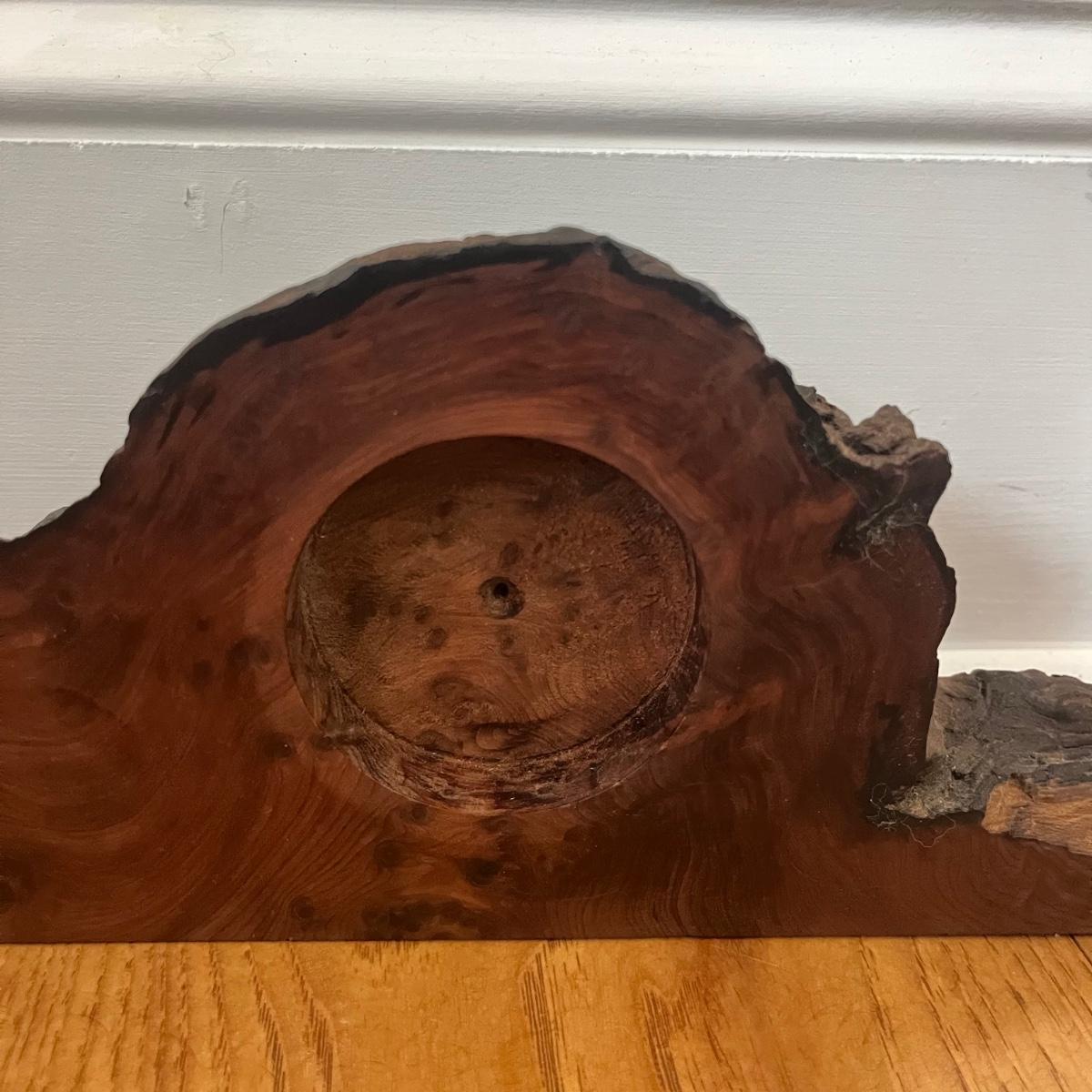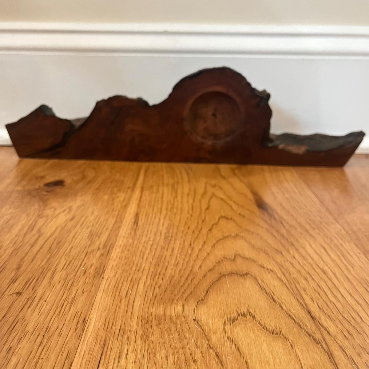 Lot includes a primitive wooden basket that appears to be made with Dowels not nails also includes a piece of wood that could hold a clock. Basket measures 13.5” x 14” x 19.5”H.