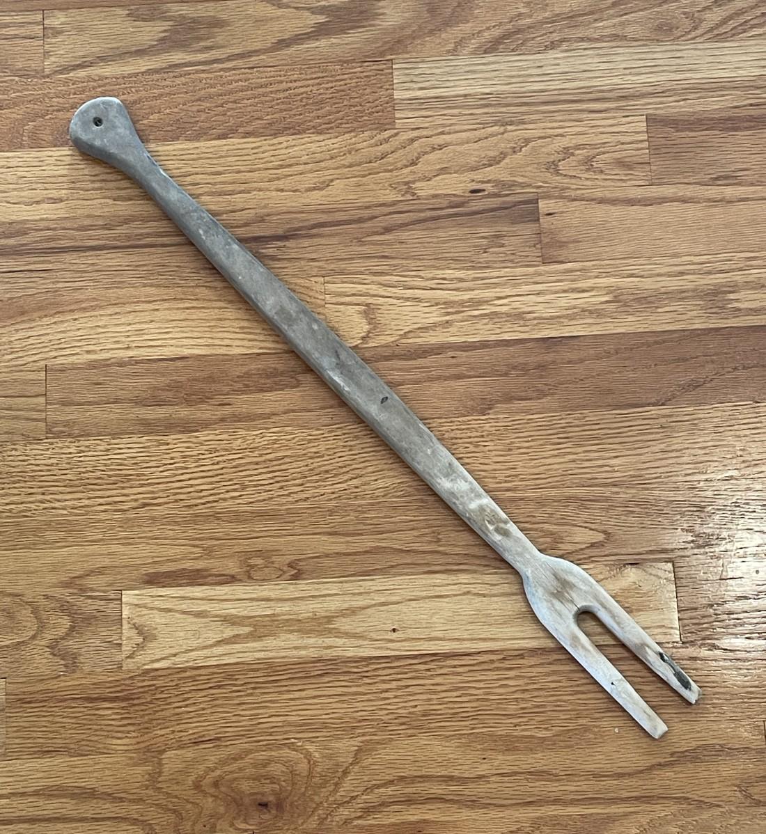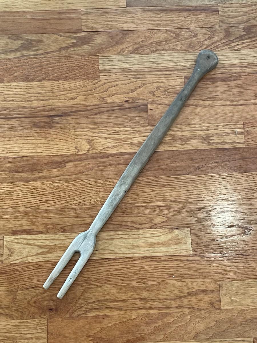 This stick is about 25 inches long and was used to stir the clothes in the wash tub.