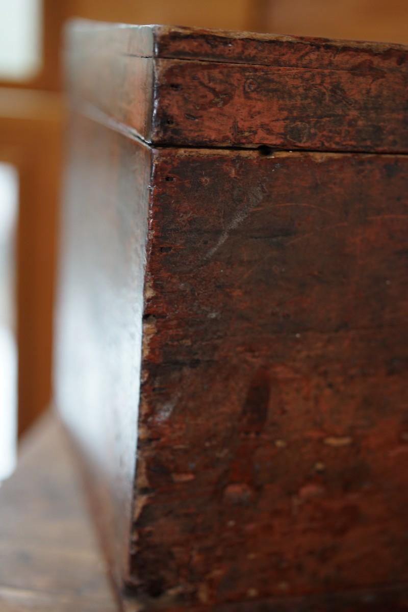 two very nice primitive boxes. one with some of the original red paint and an insert inside