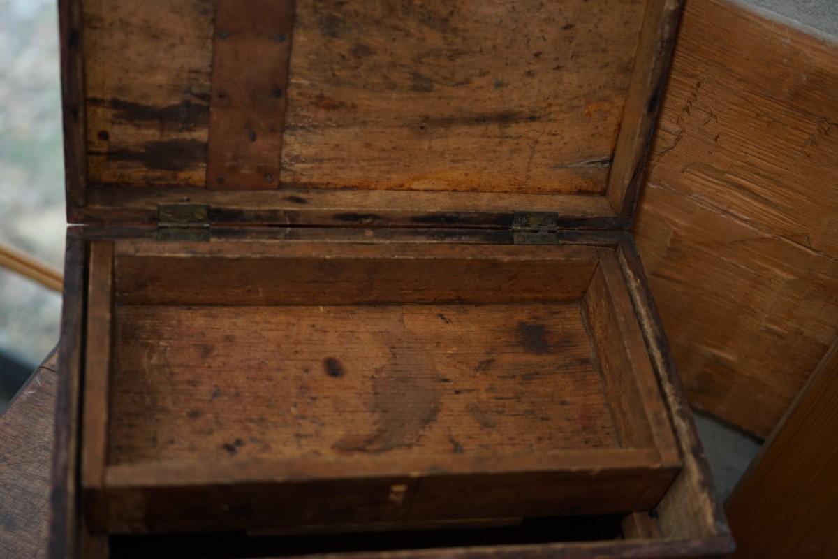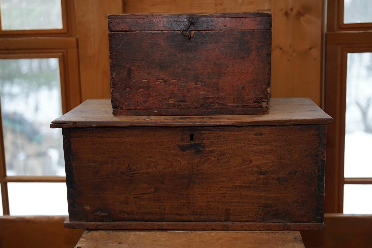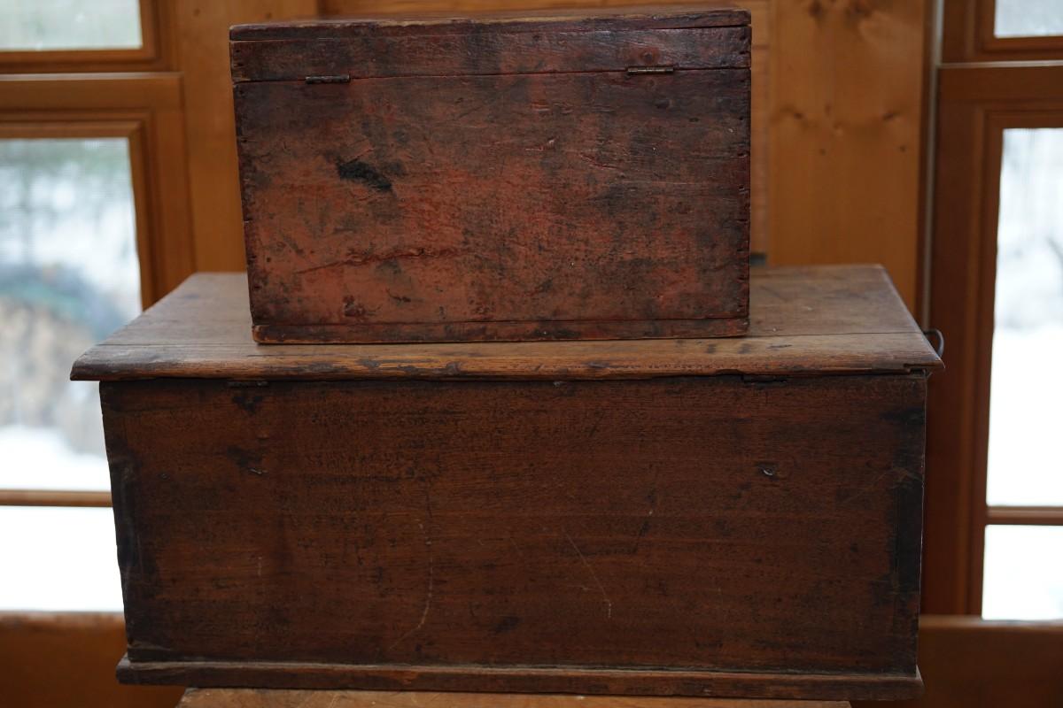 both have some staining on the outside but sturdy and historic. dovetailed sides. hand crafted
