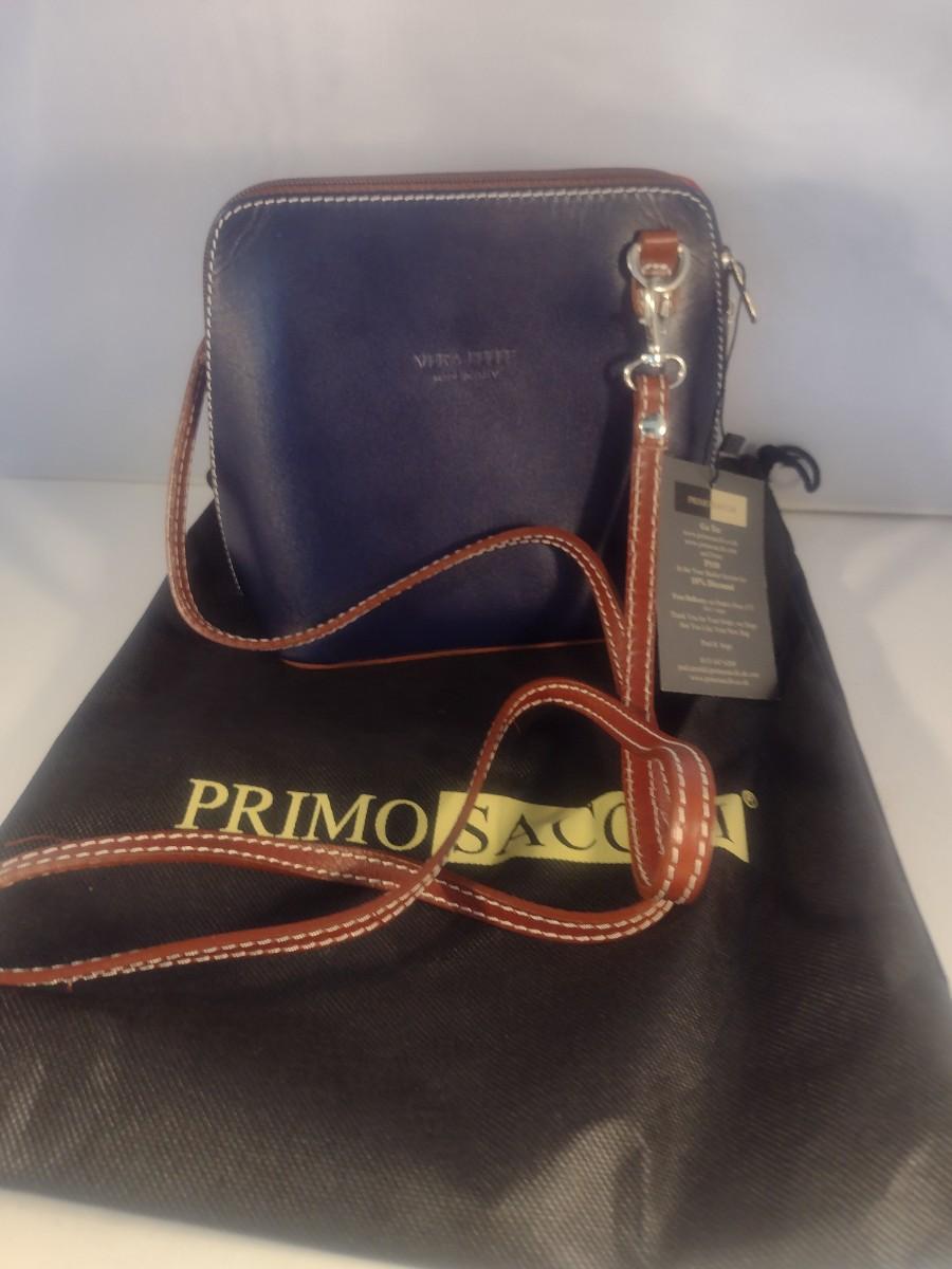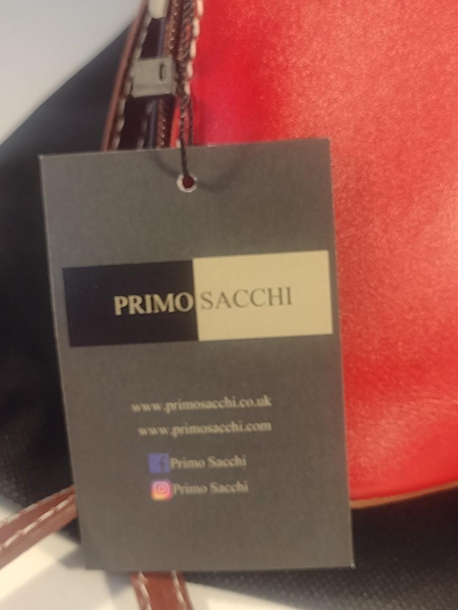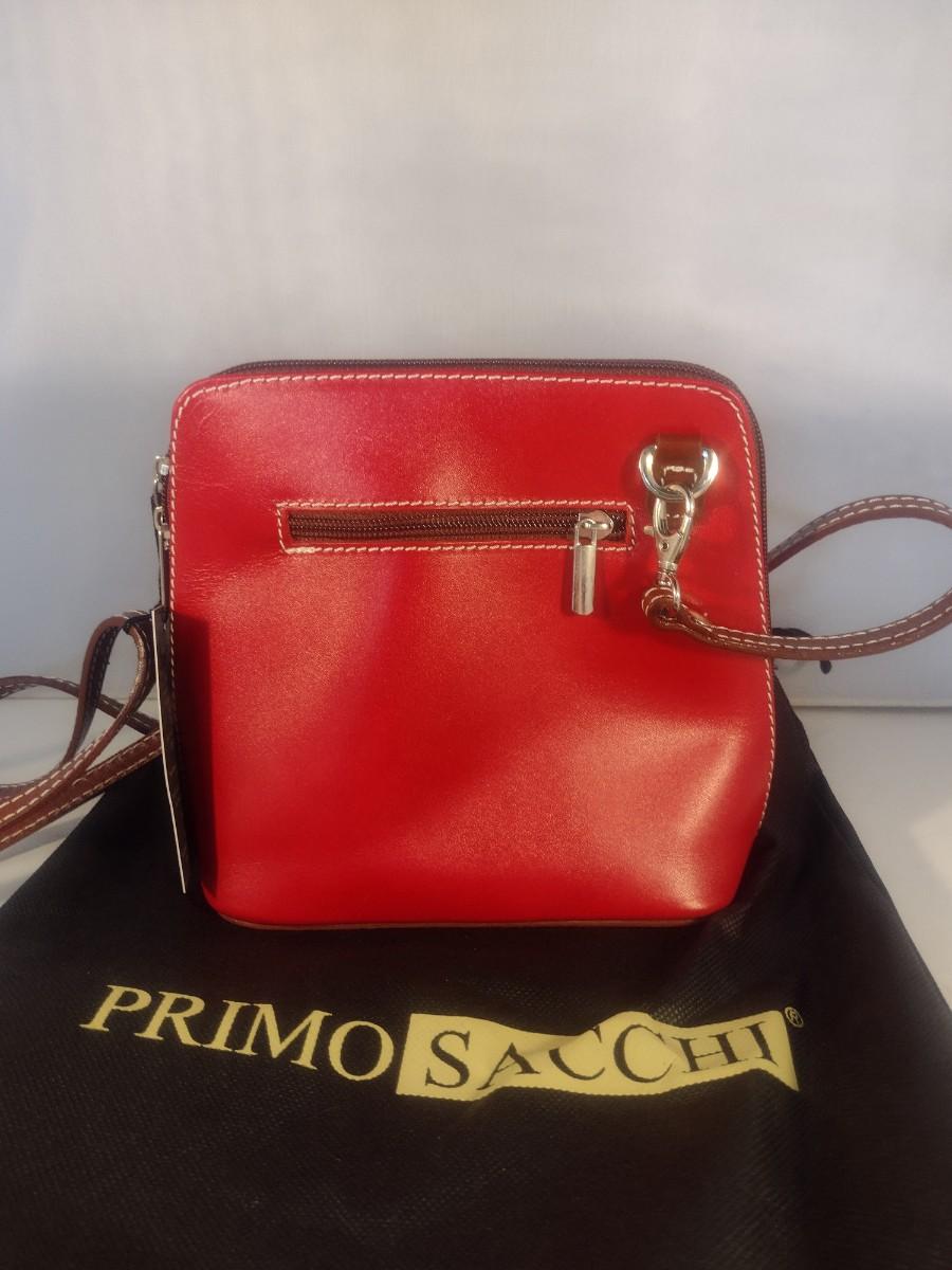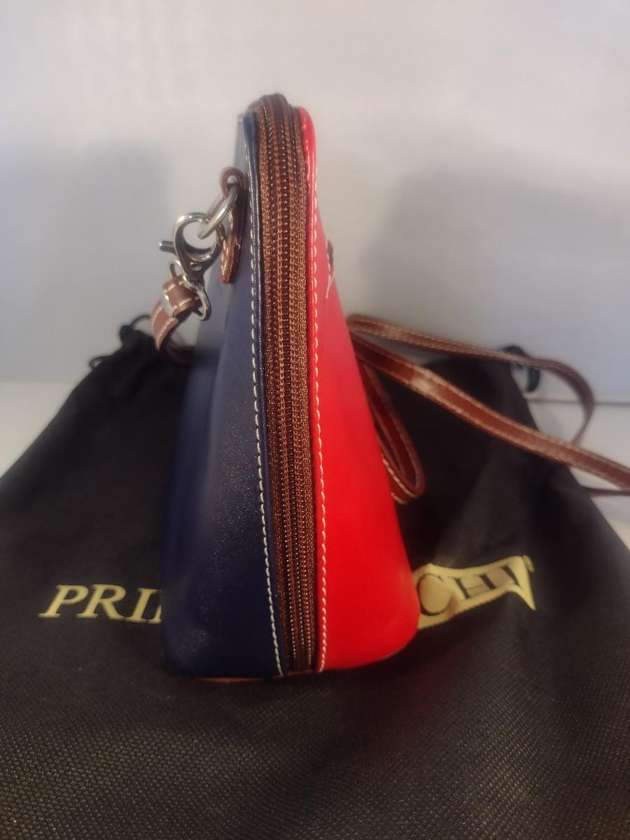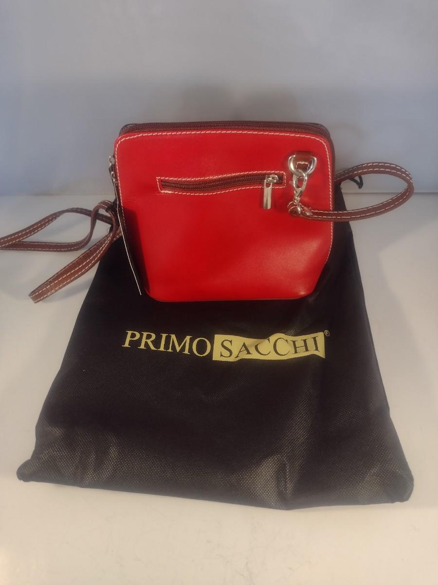 Primo Sacchi Italian Leather Red with Obverse Blue Design Shoulder Bag with Dust Cover