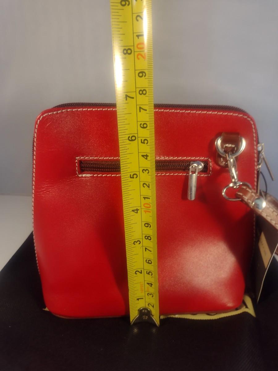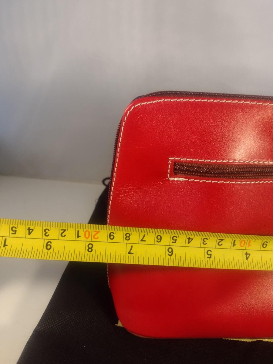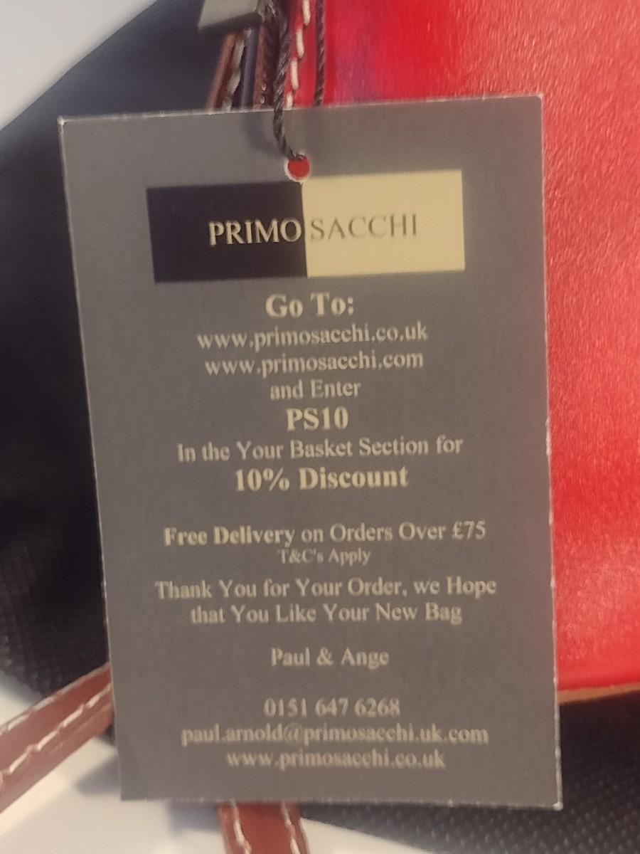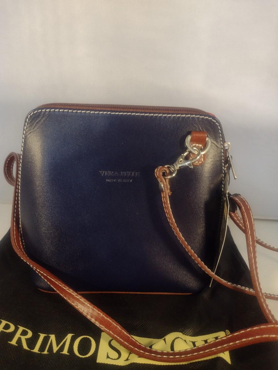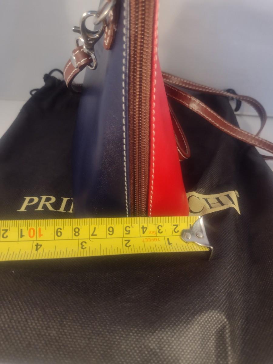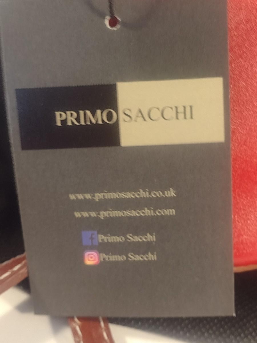 Primo Sacchi Italian Leather Red with Obverse Blue Design Shoulder Bag with Dust Cover