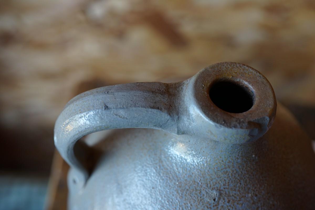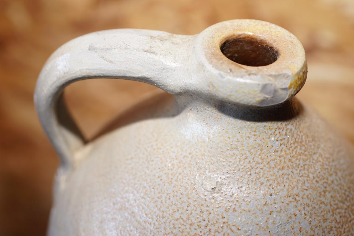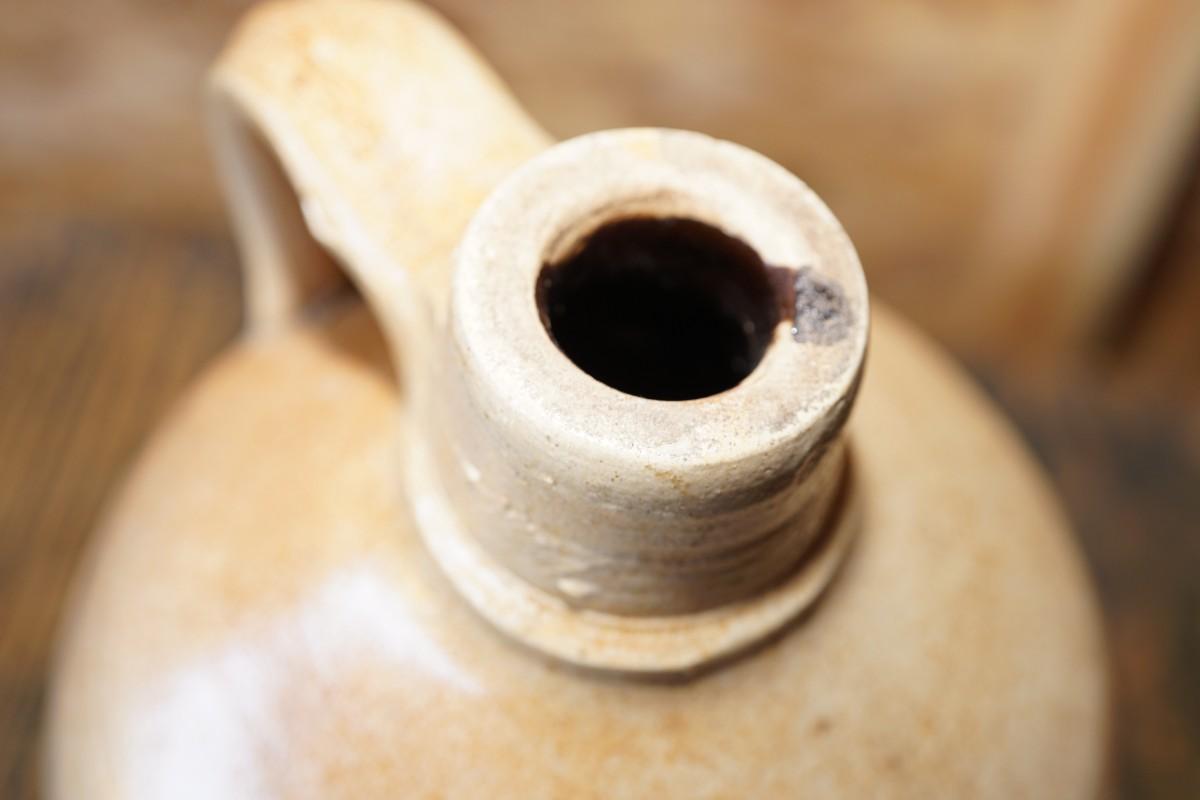 The other jug is ovoid in shape. 10 1/2" in height. noted chip on rim, see photos. no signature found.