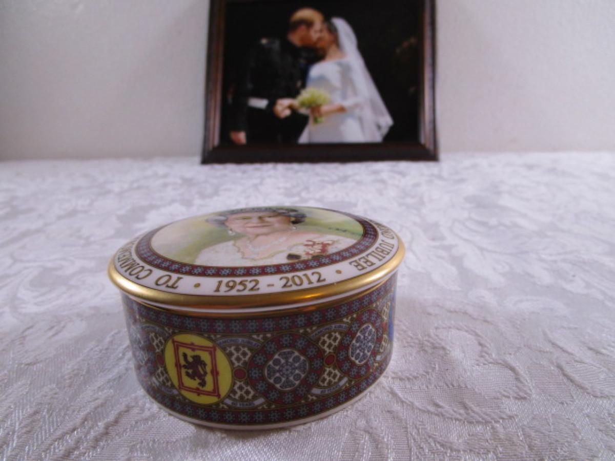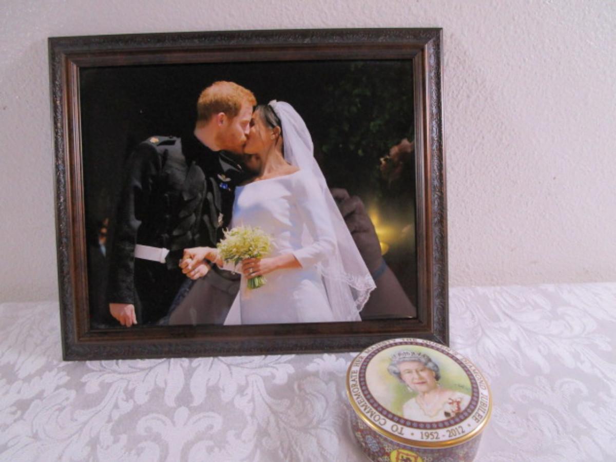 Prince Harry and Princess Megan picture and Queen Elizabeth commerative dish