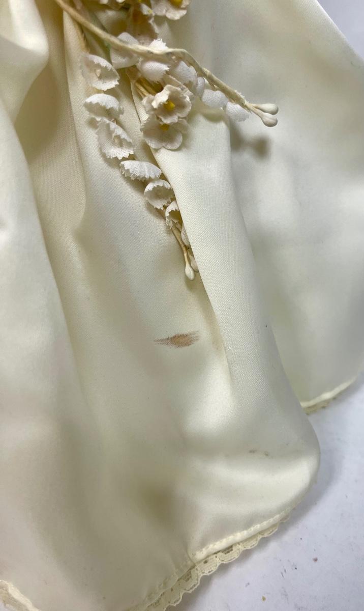 In fair condition, there are a few stains, and hair and Dress is messy.