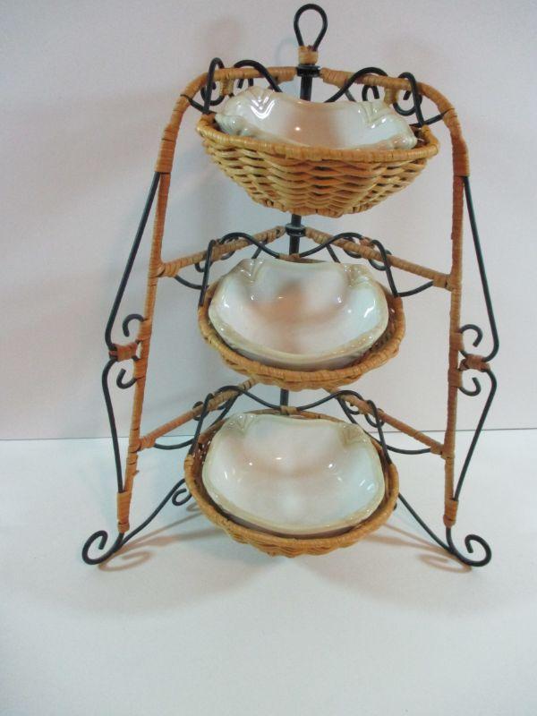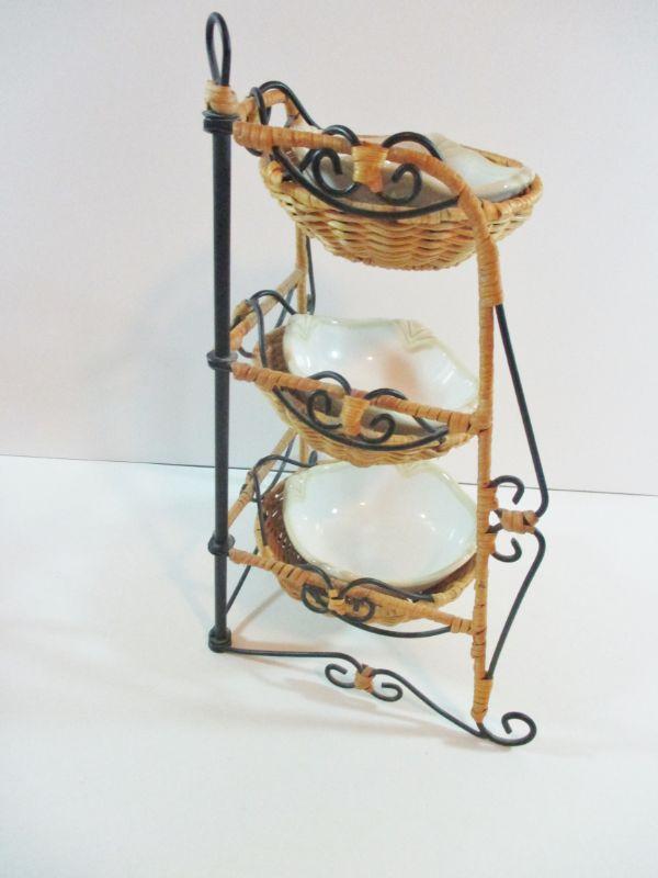 Princess house 3 Teir Serving Set wicker with bowls 14"