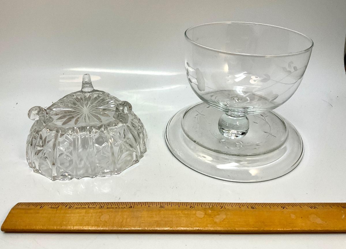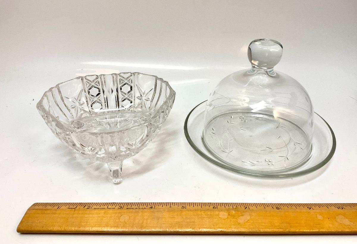 Princess House Domed Butter Dish and Tri-legged candy dish by unknown maker