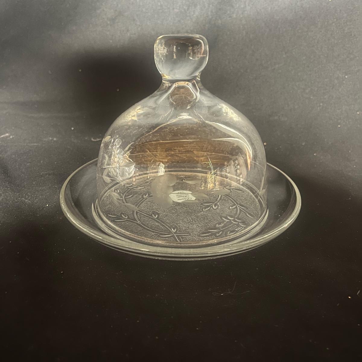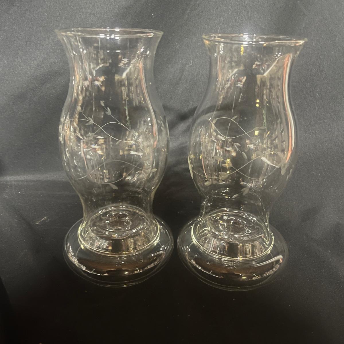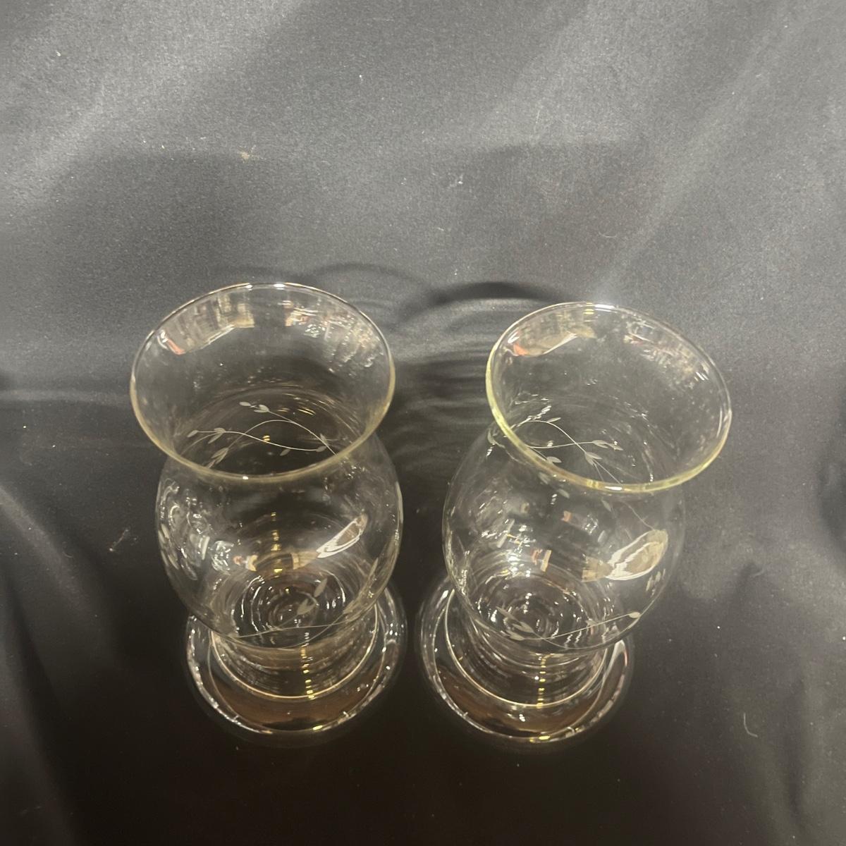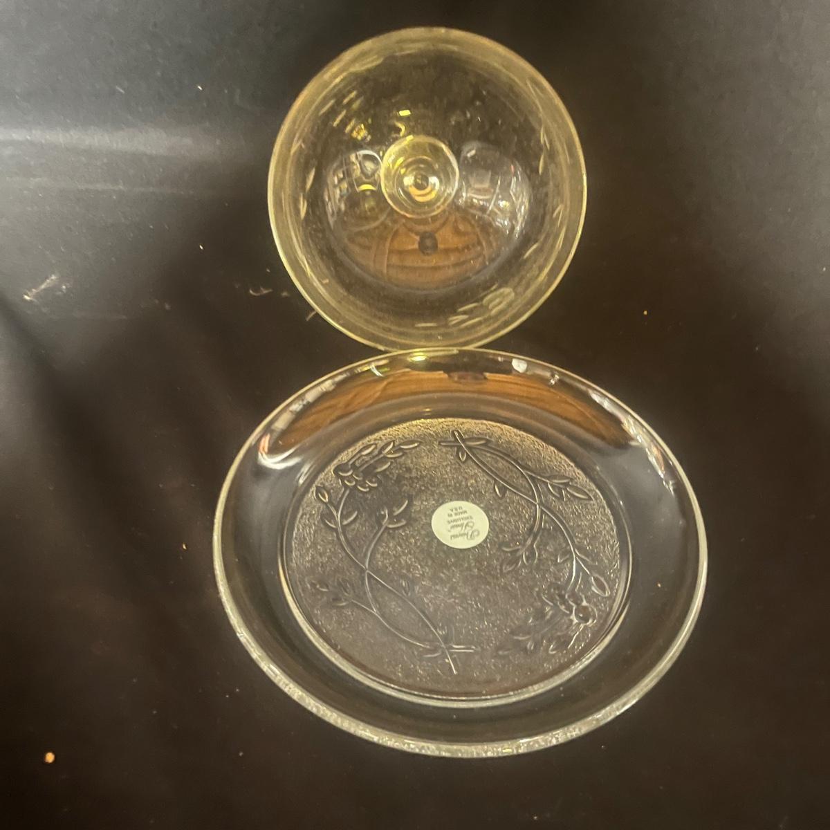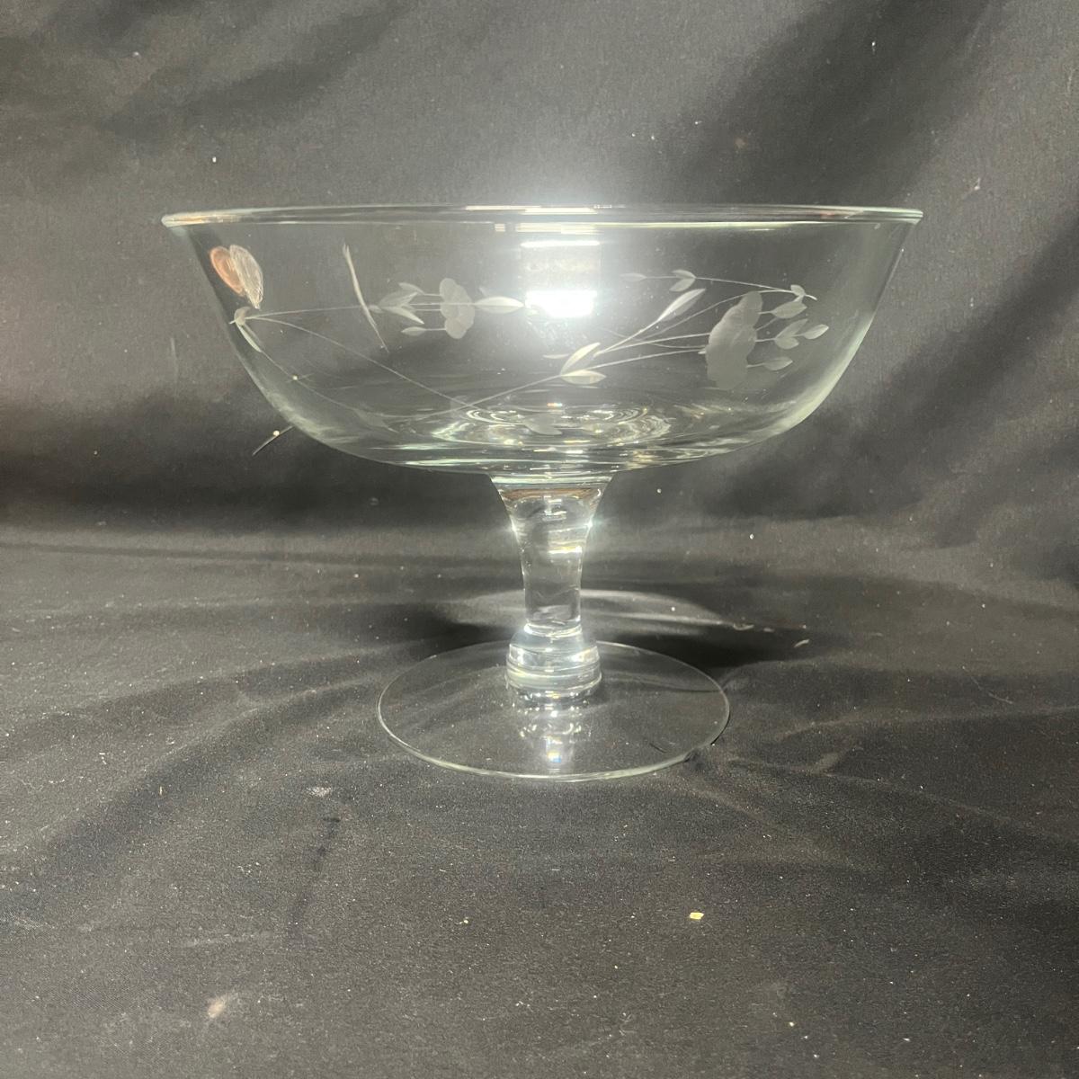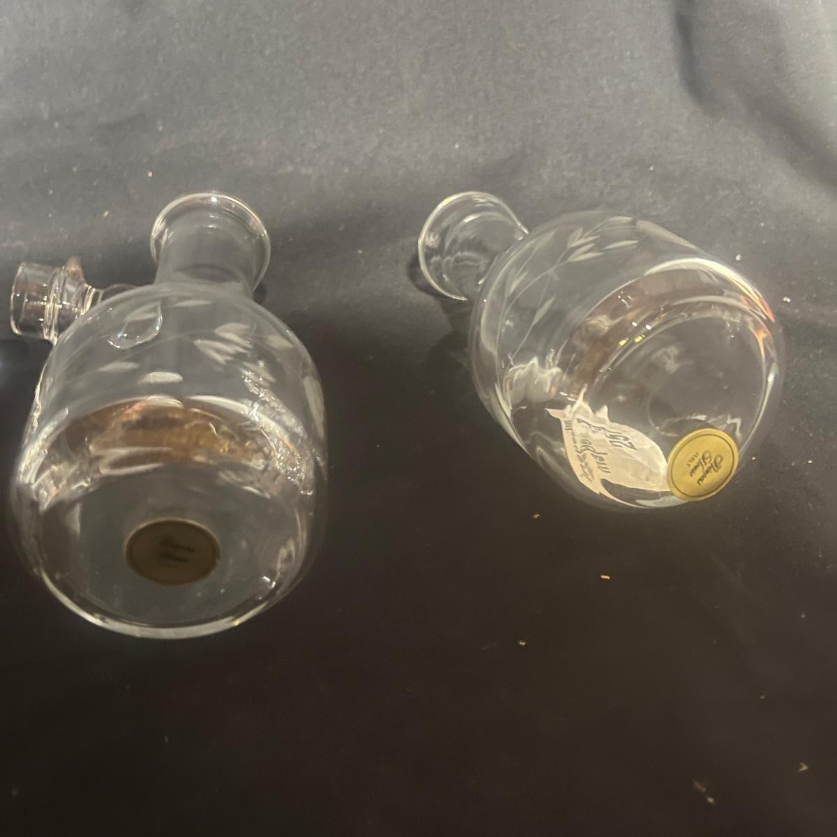 This collection of Princess House etched glass and more includes coffee pot, cake tray, cookie jar, candle holders, copper and brass trays, cruets, glasses, canister, ice bucket and more. Cake stand measures 12”D x 12”H. Many items are in their original boxes.