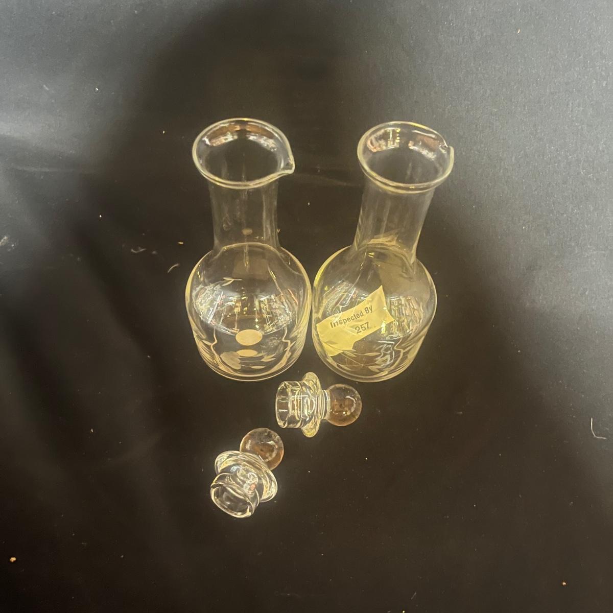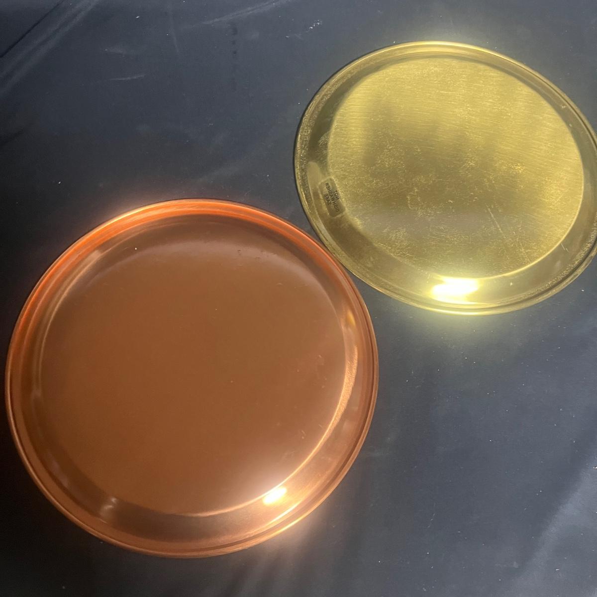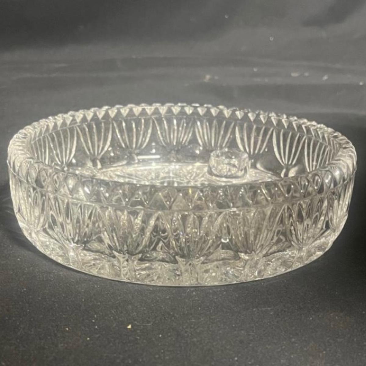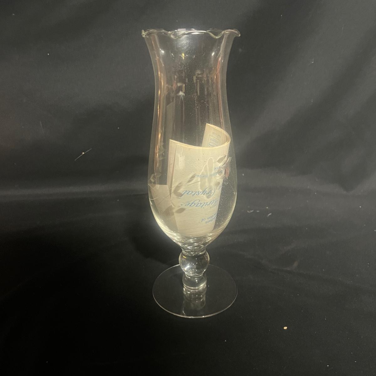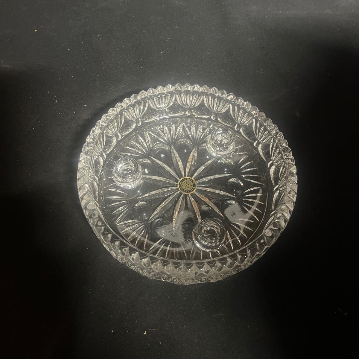 This collection of Princess House etched glass and more includes coffee pot, cake tray, cookie jar, candle holders, copper and brass trays, cruets, glasses, canister, ice bucket and more. Cake stand measures 12”D x 12”H. Many items are in their original boxes.