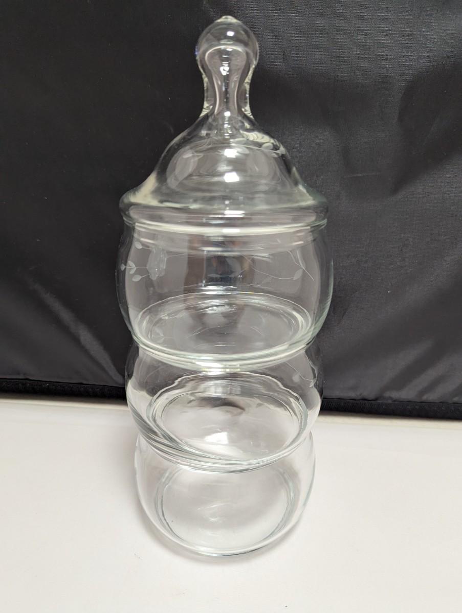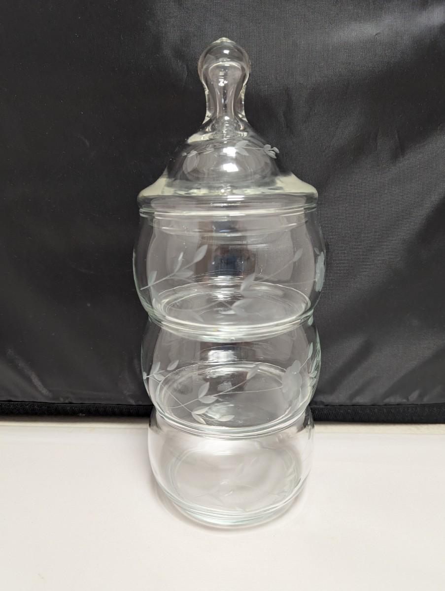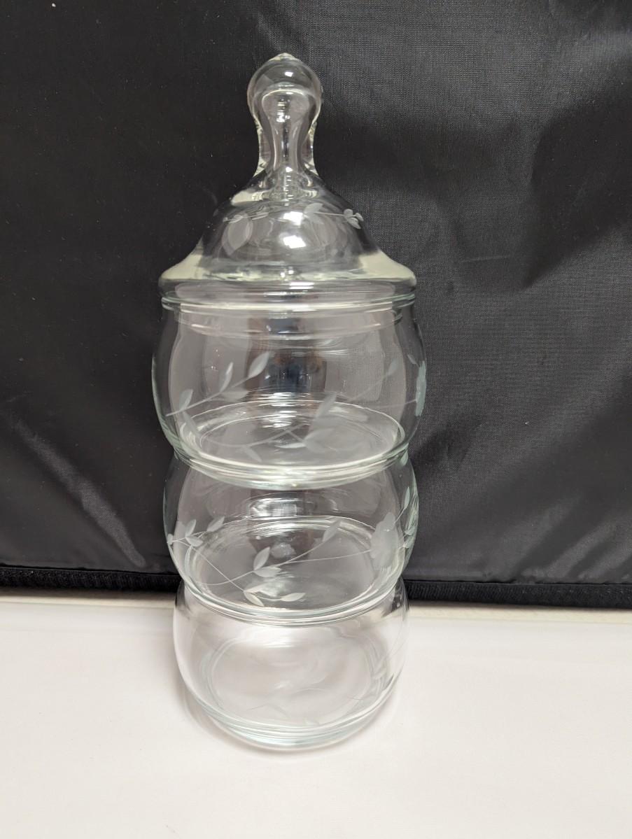 Princess House Heritage 3 Tier Stack-able Etched Covered Candy Dish #3 (DR)