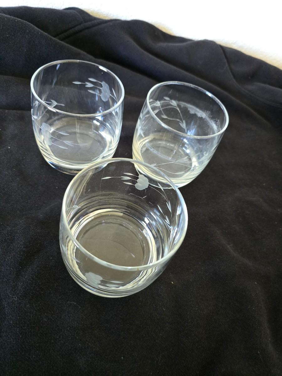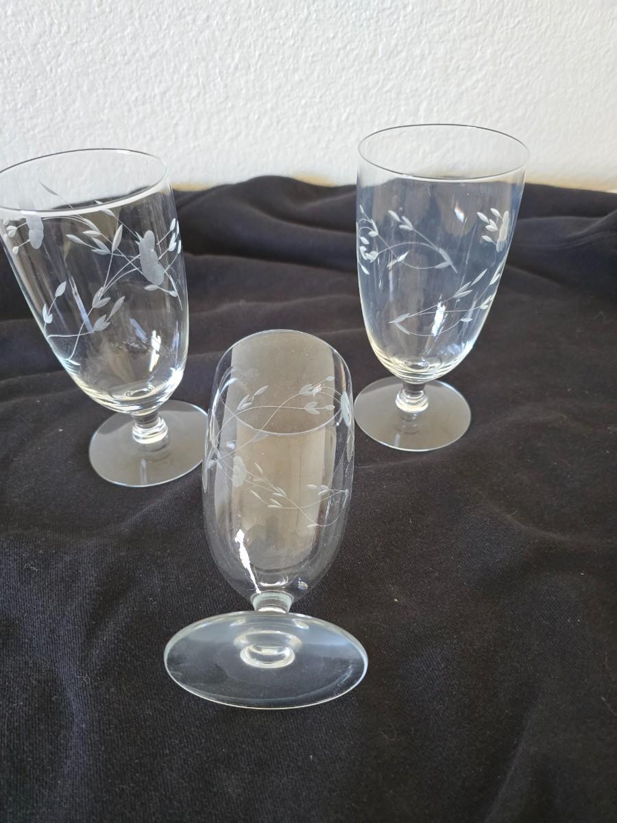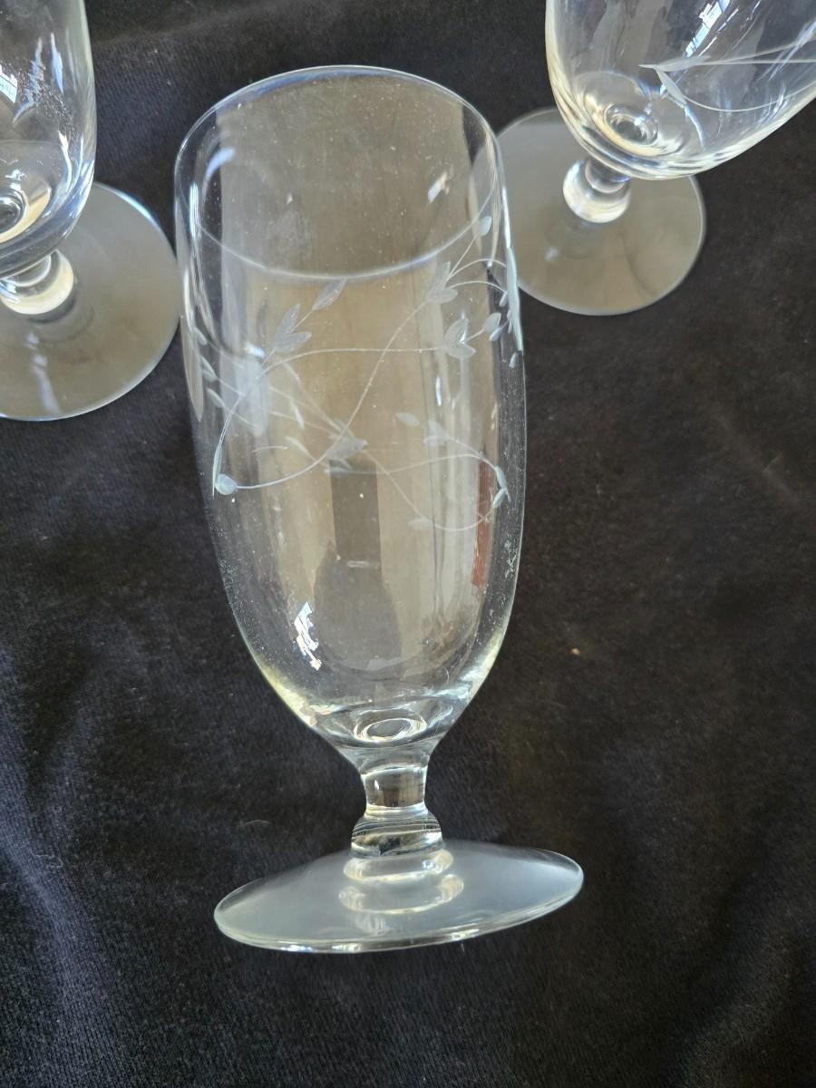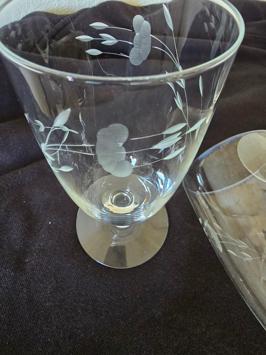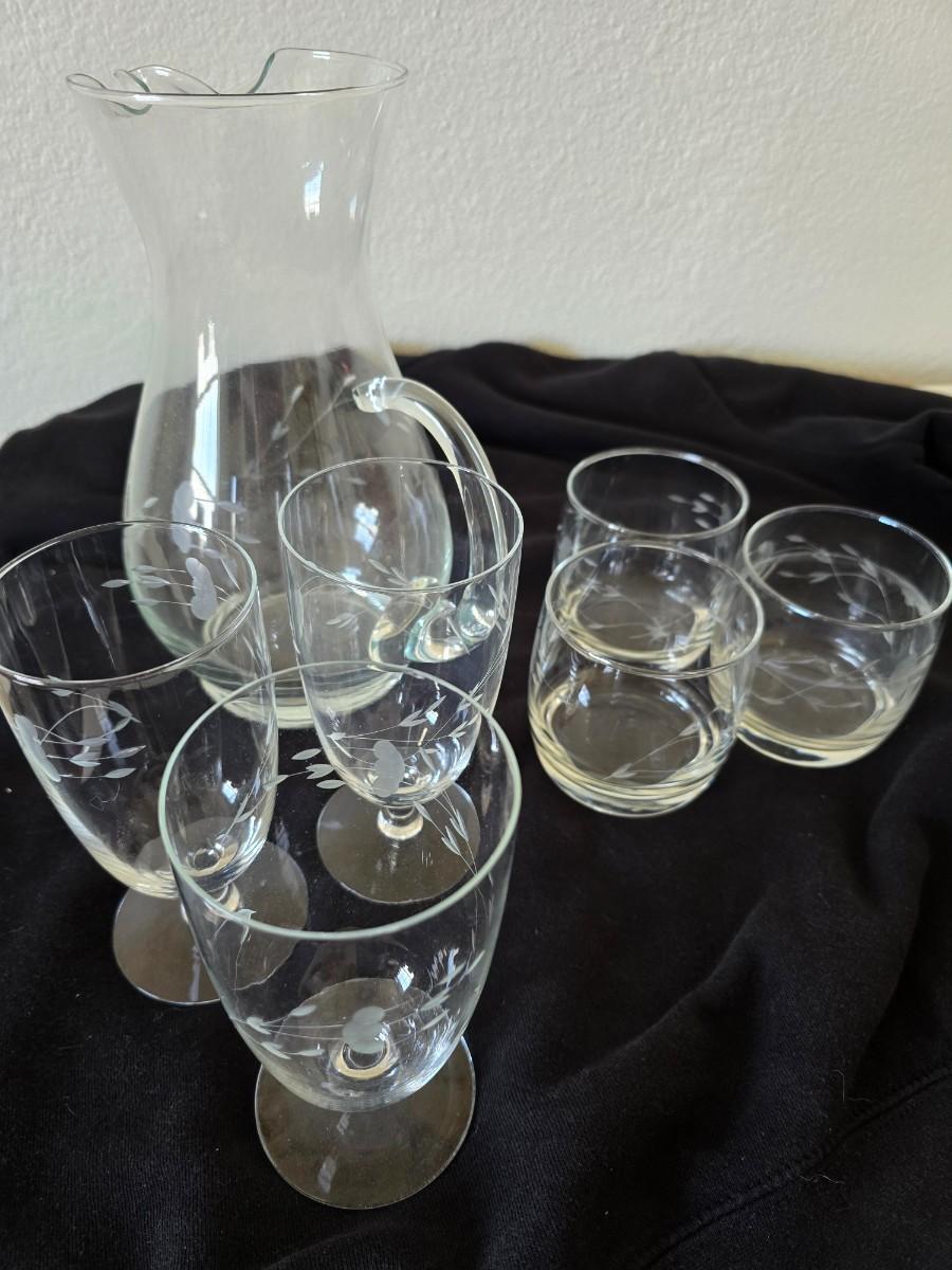 Princess House Heritage Clear Glass Pitcher with 3 princess house stemware glasses and 3 Juice glasses