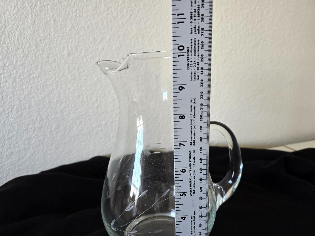 Serve in style with this graceful clear glass pitcher by Princess House, featuring their signature etched floral motif and gently flared silhouette. Ideal for iced tea, lemonade, sangria—or simply as a charming table centerpiece.