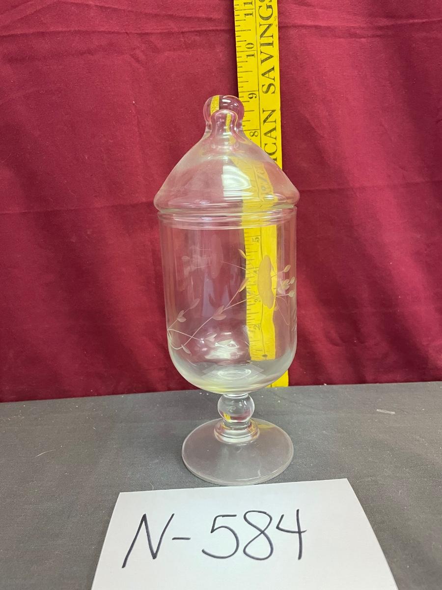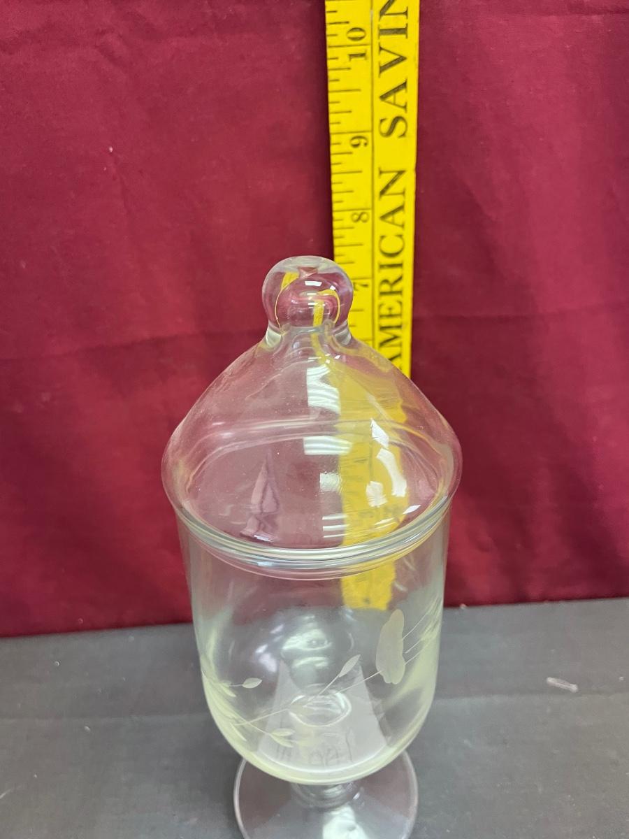 Princess House heritage pedestal stemmed etched crystal glass candy jar