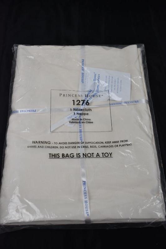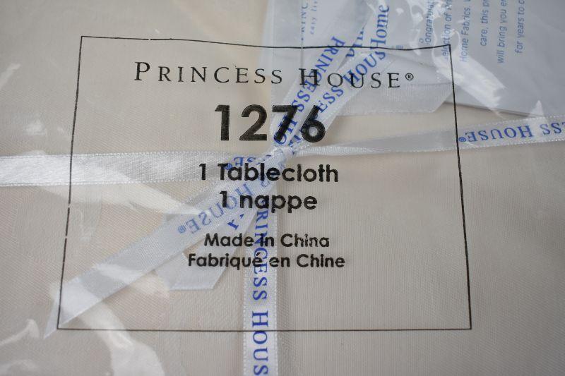 Princess House Home Fabrics. Ivory Tablecloth, Linen Damask 84" x 58" - New