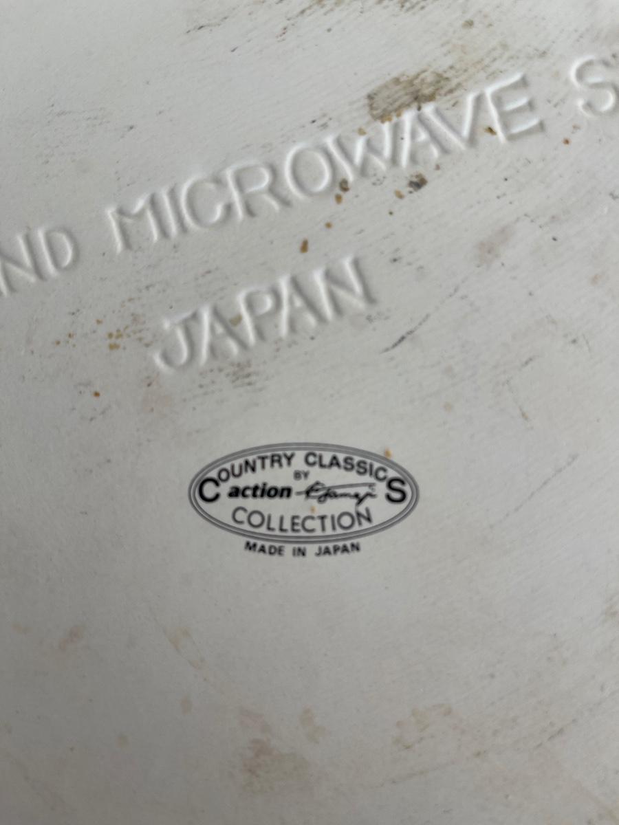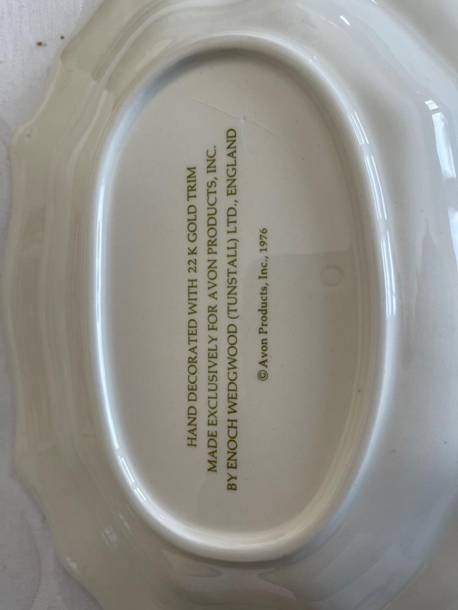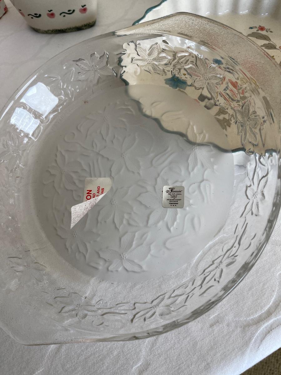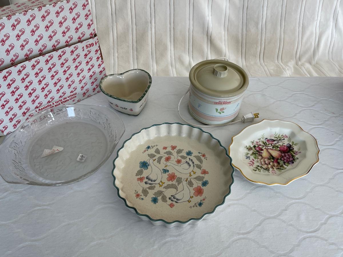 Princess house pie dish, Tastefully simple heart dish, Country Classics quiche dish, Avon 22 karat gold trim plate and Rival Little Dipper electric stoneware server