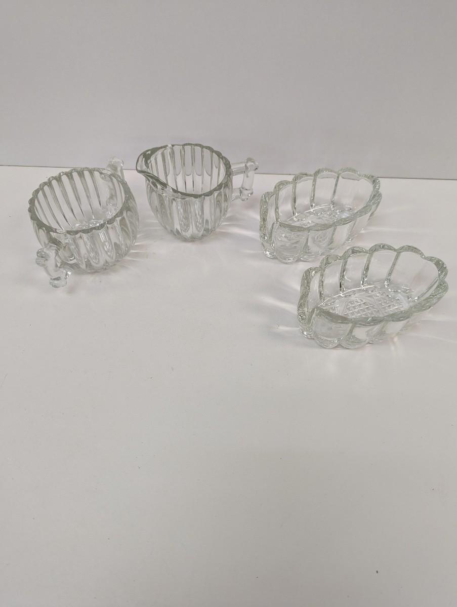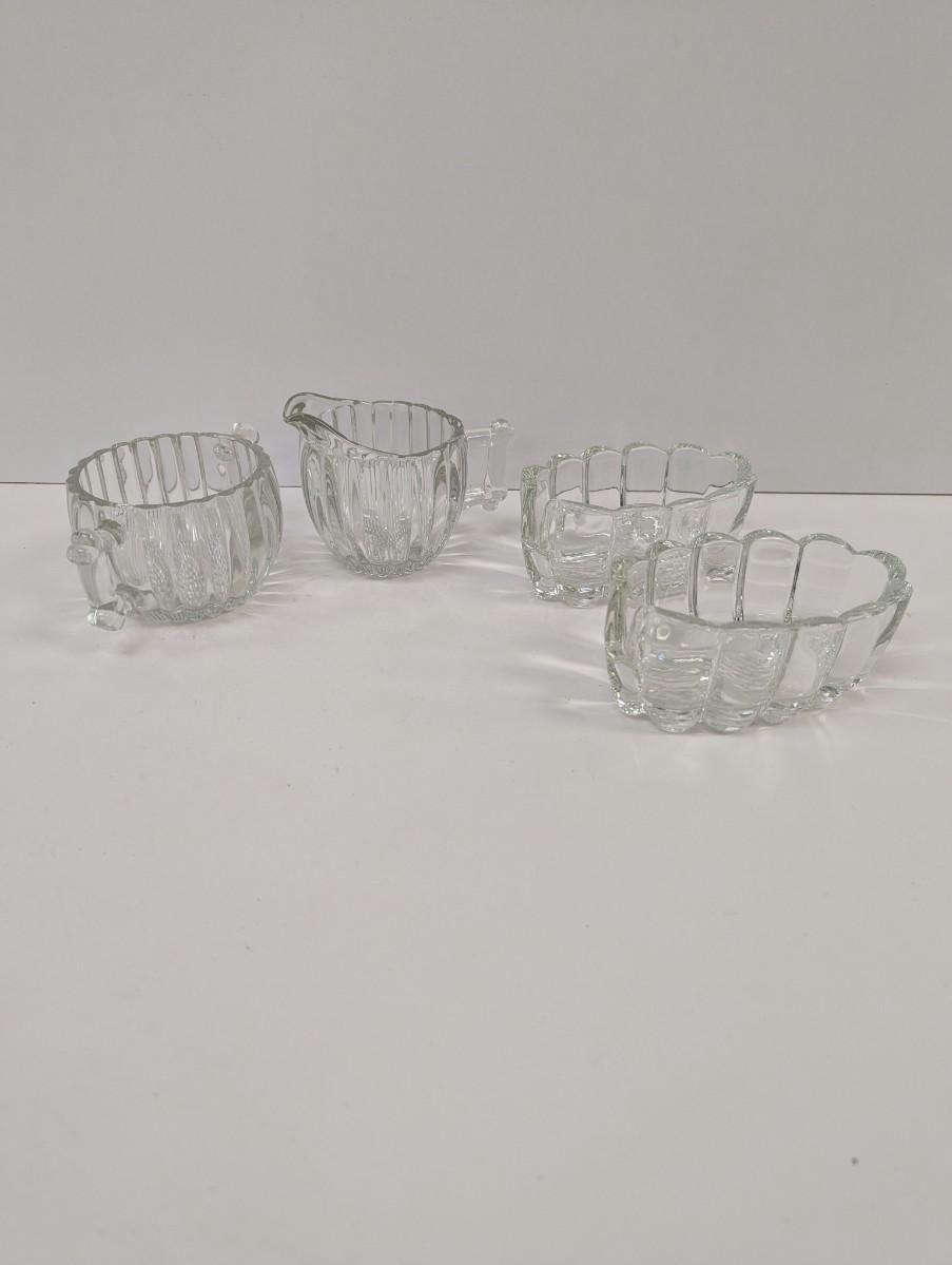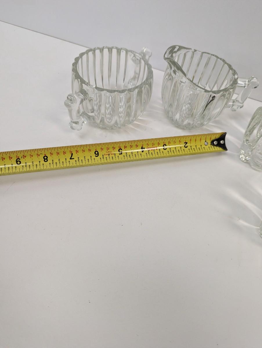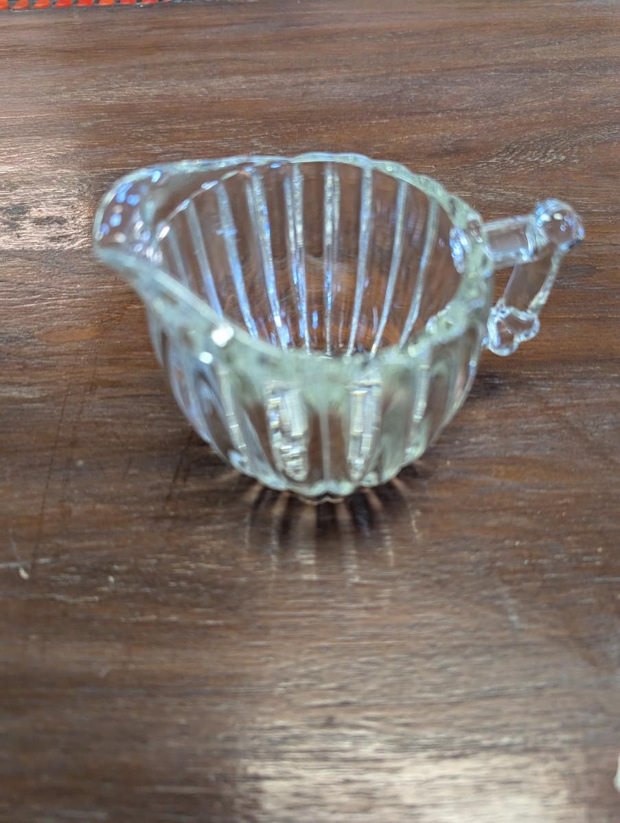 Princess House Spooner Clear Spoon Or Fork Holder Scalloped Jeannette National Clear Ribbed Glass Sugar Bowl & Creamer