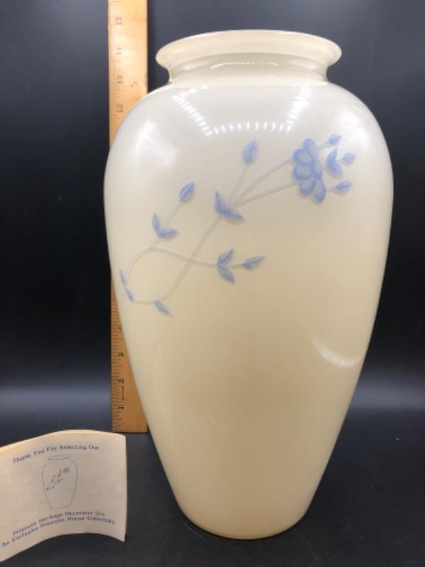 Vintage Princess House Heritage vase. White vase with pale blue flowers. New condition. Comes in original box.