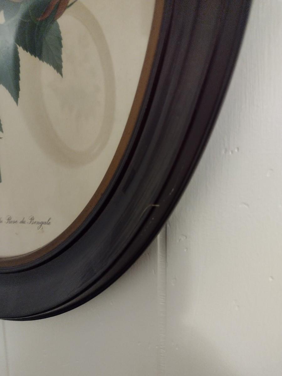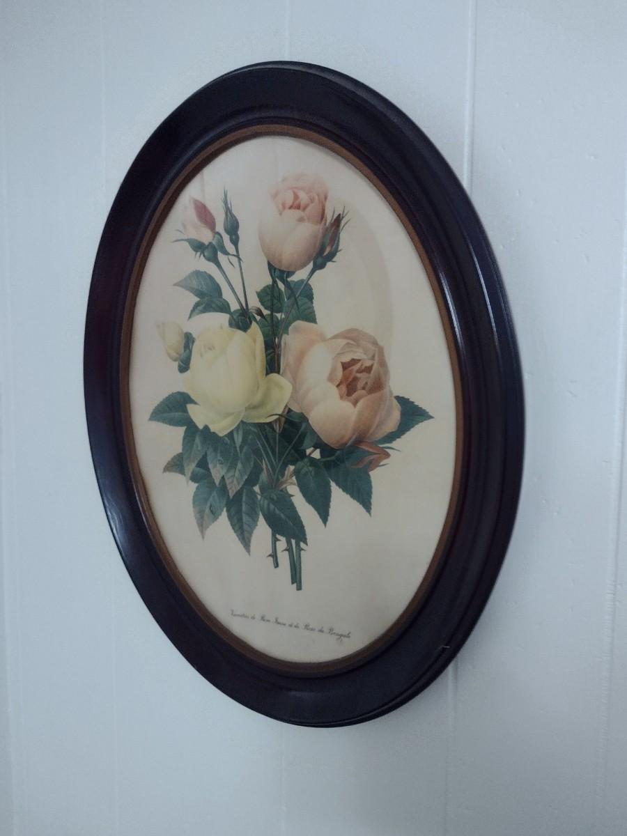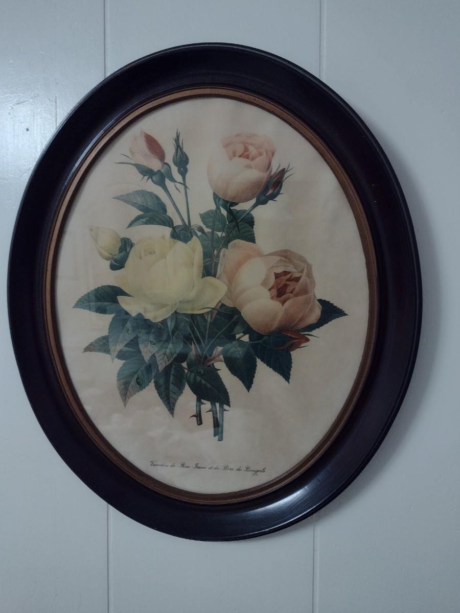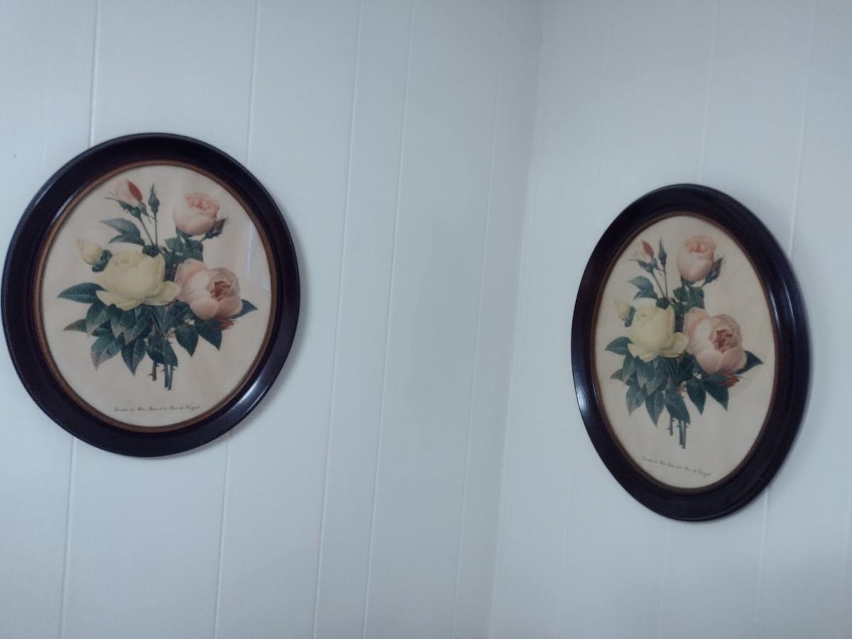 Pair of Antique Floral Prints in Mahogany Wood Frame
