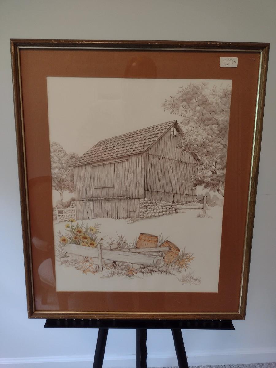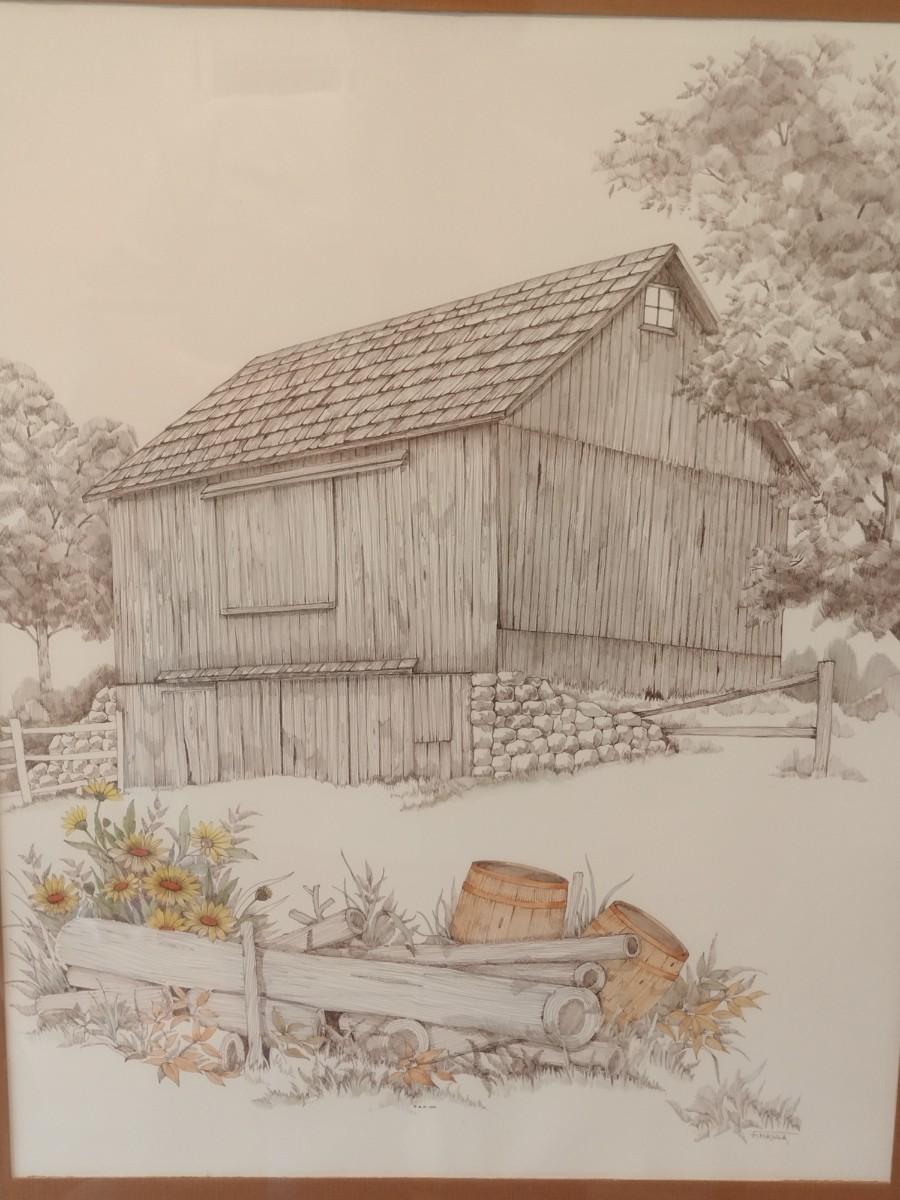 Framed Art Print Barn by F. Massa