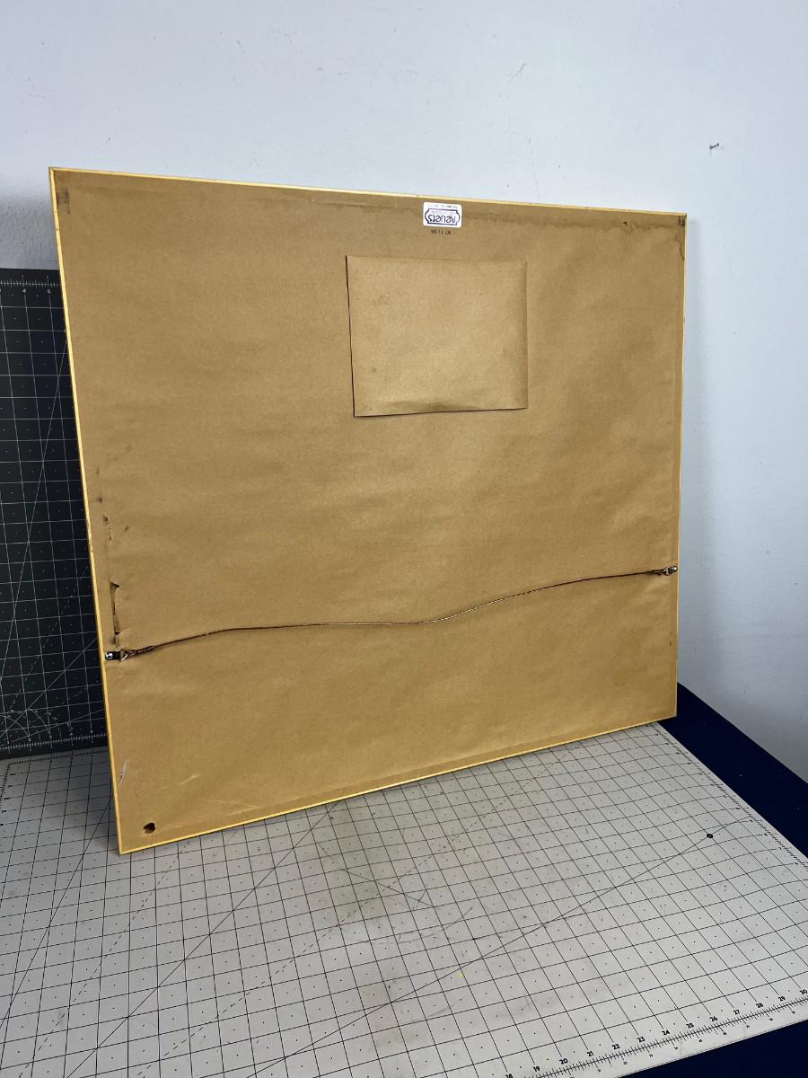 We ship only art removed from the frame. NO FRAME SHIPPED, they break. 23 x20 Measures. Frame is 32 x 28