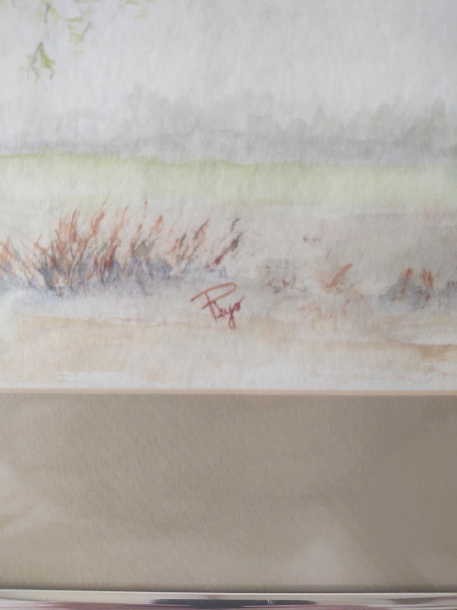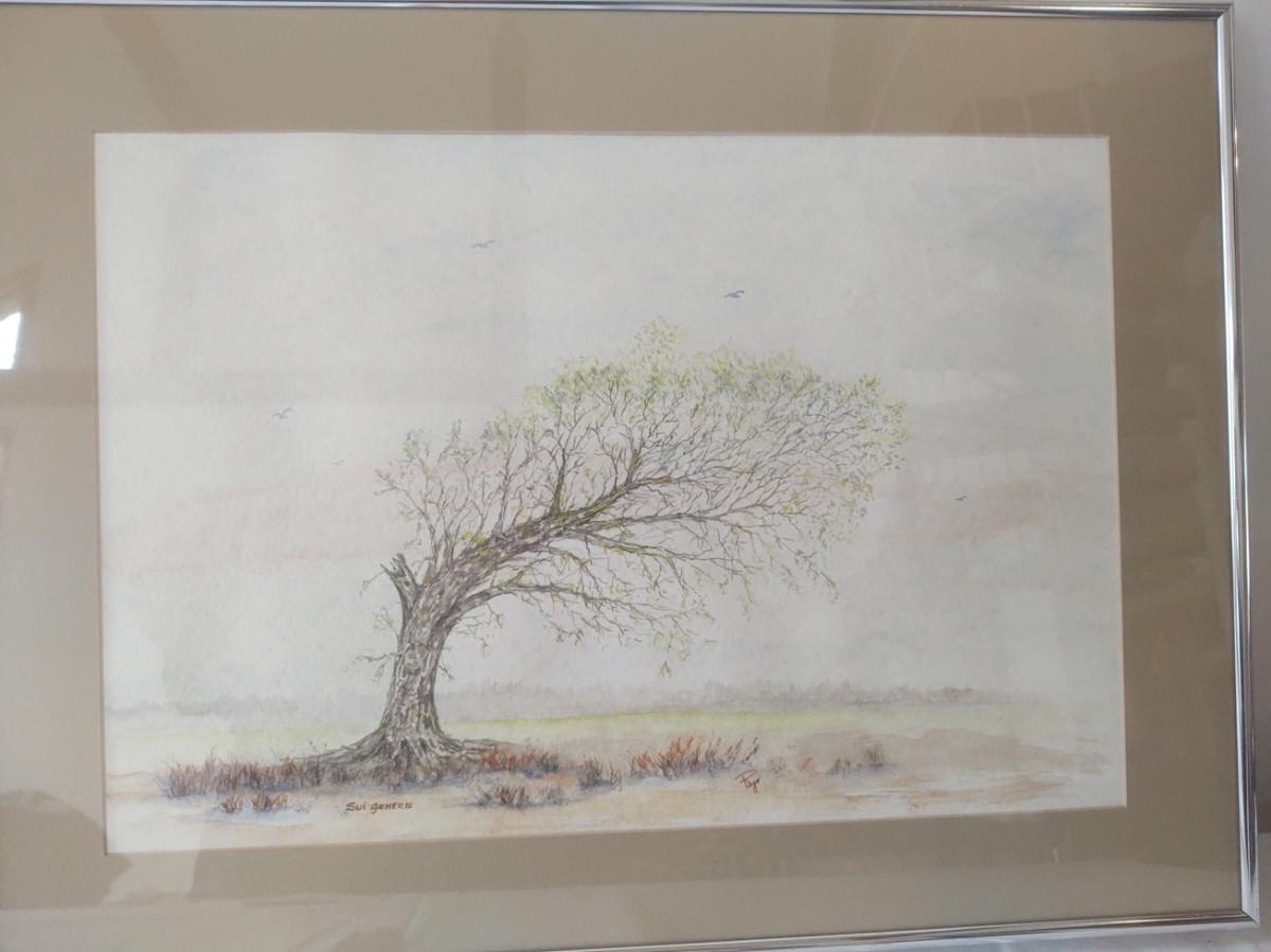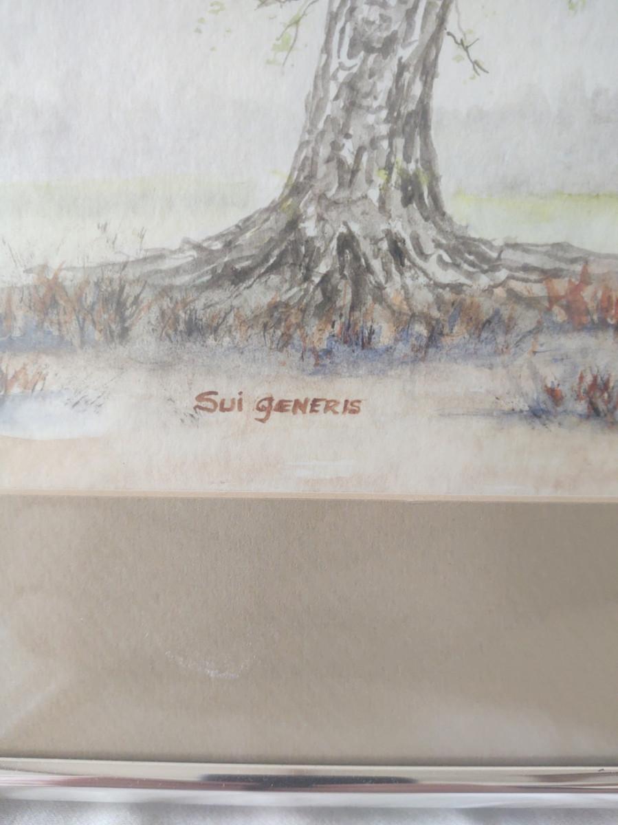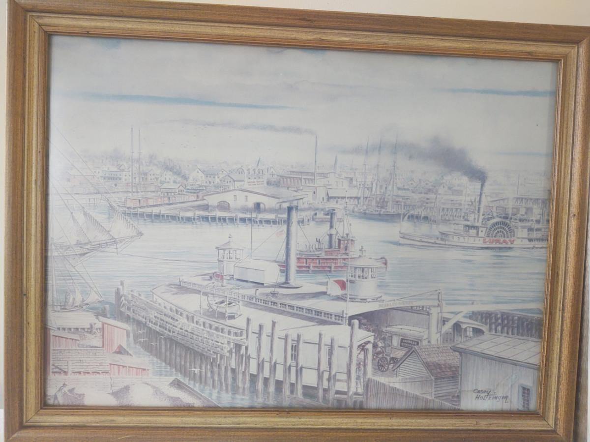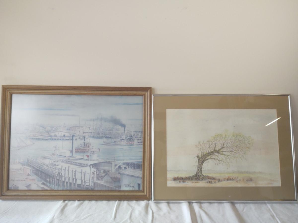 Two pieces. Left is a print of a harbor. The right piece looks like it was painted on rice paper. Please see pictures for details.