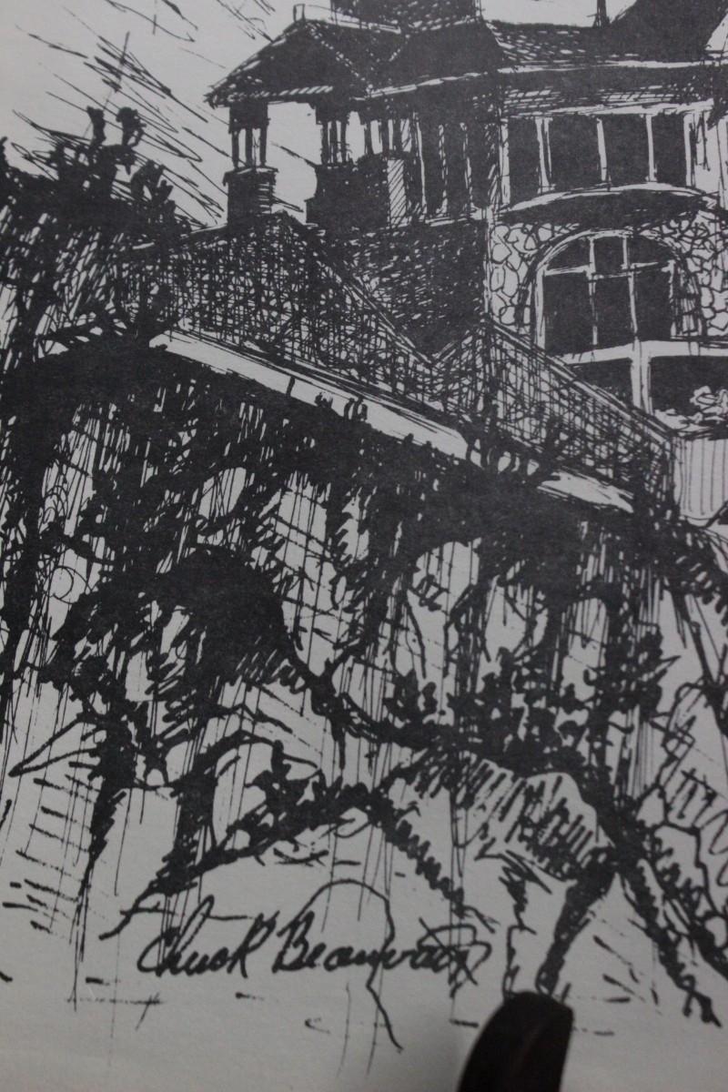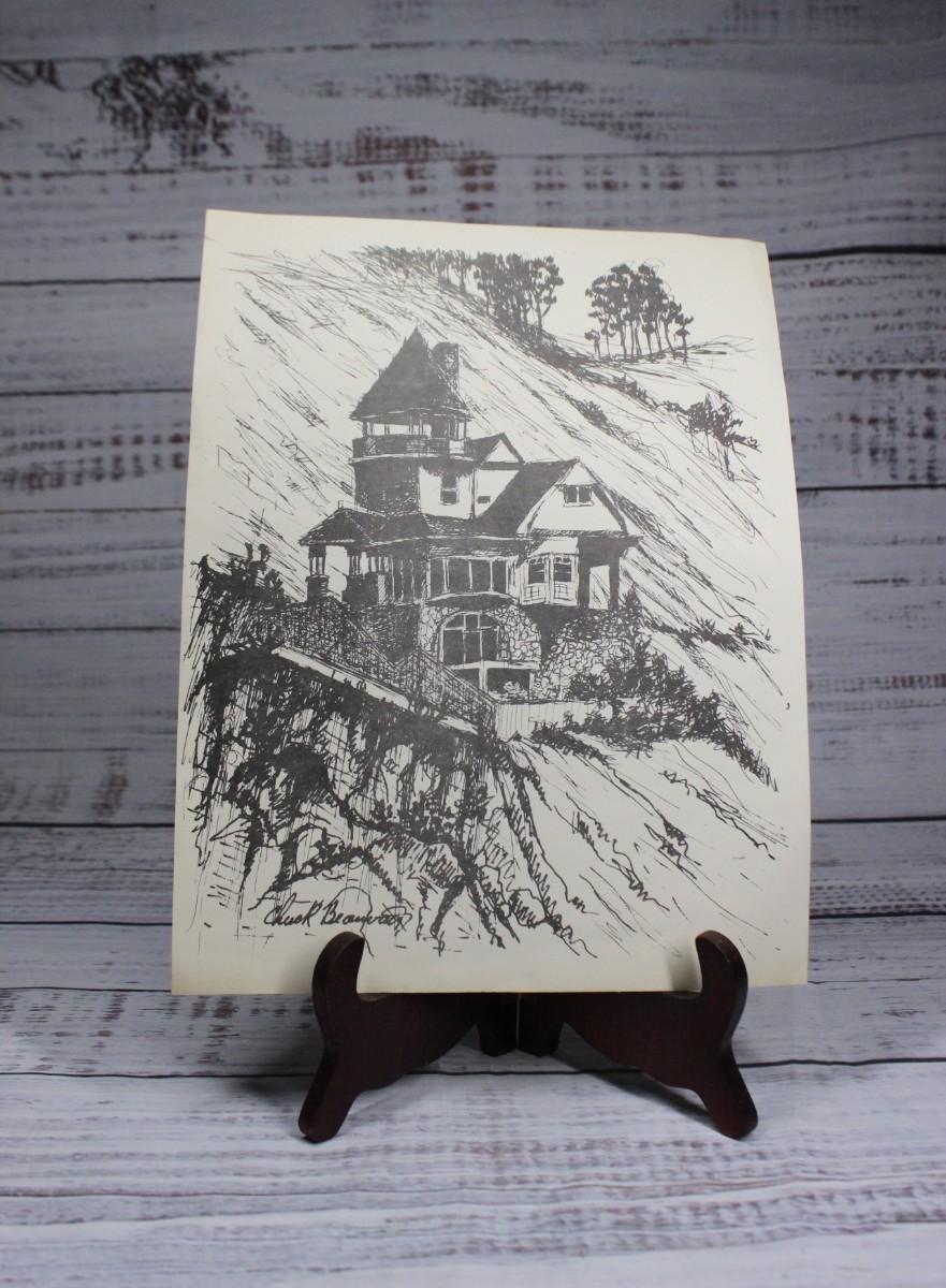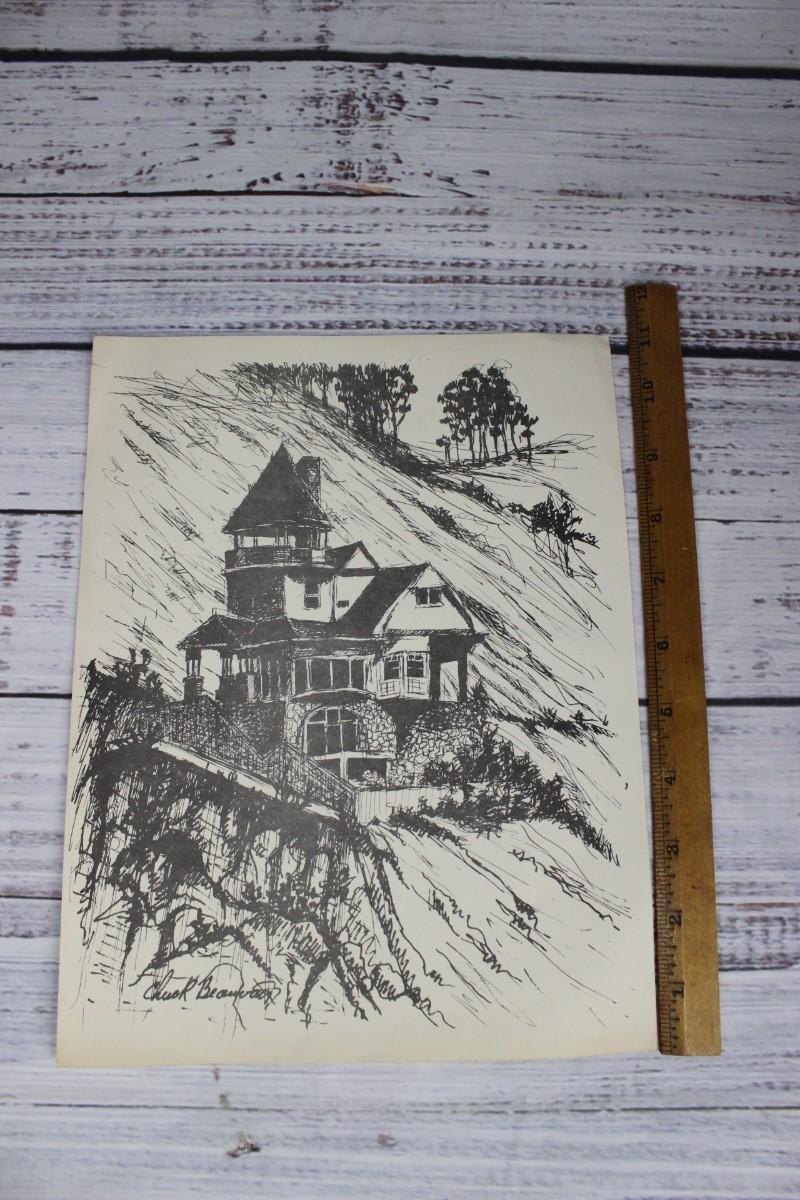 Vintage print by artist Chuck Beaueran measures 8.5" x 11" and comes with protective plastic sleeve. There are no tears or rips to the print