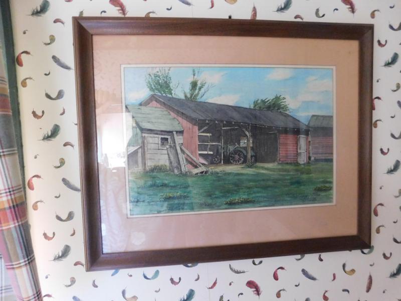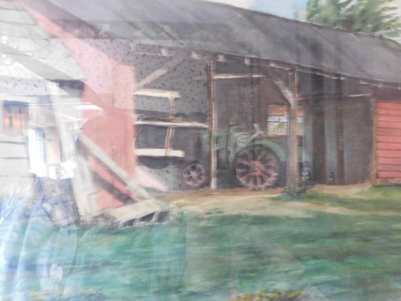 Print of Vintage Tractor Under Lean-To. Very nice piece with vivid colors